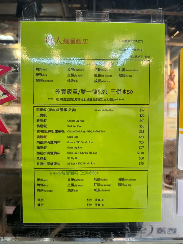 鳴人燒臘飯店 (西环) 网址: https://s.openrice.com/QrLS0J24700 地址: 香港西环西营盘正街5号宝丰大厦地下3号舖 电话: +852 28580071