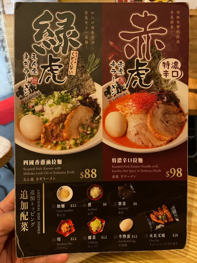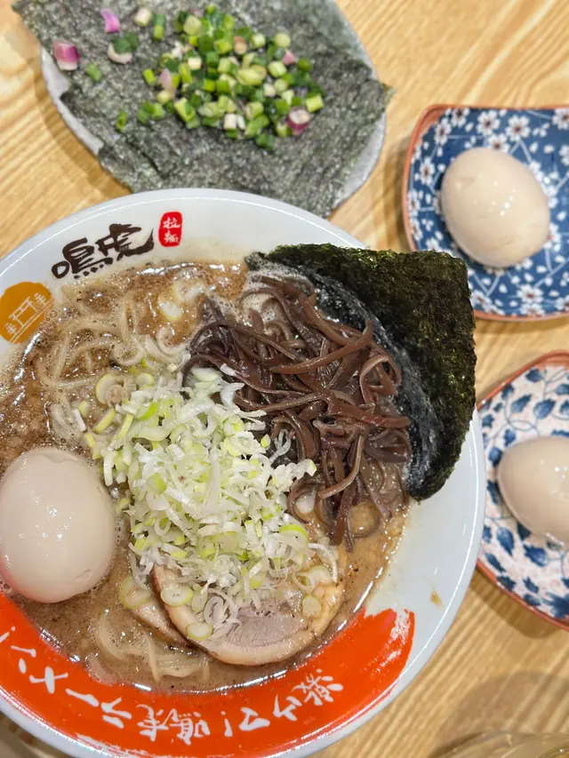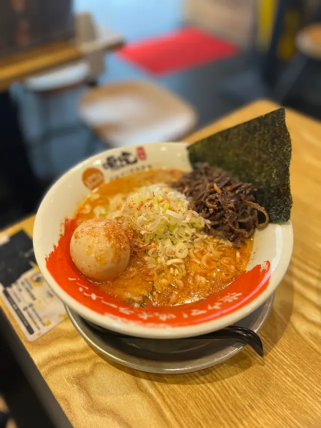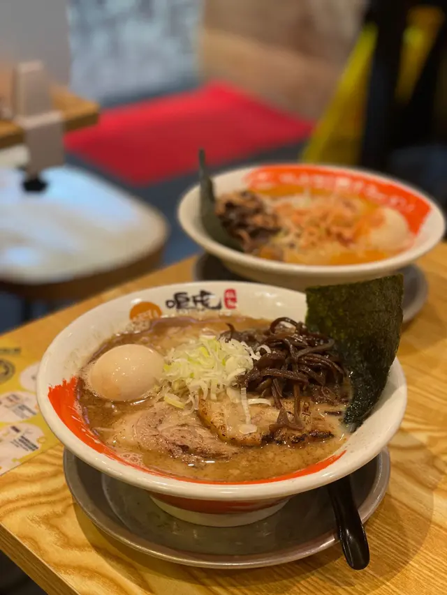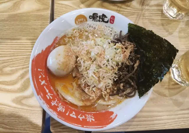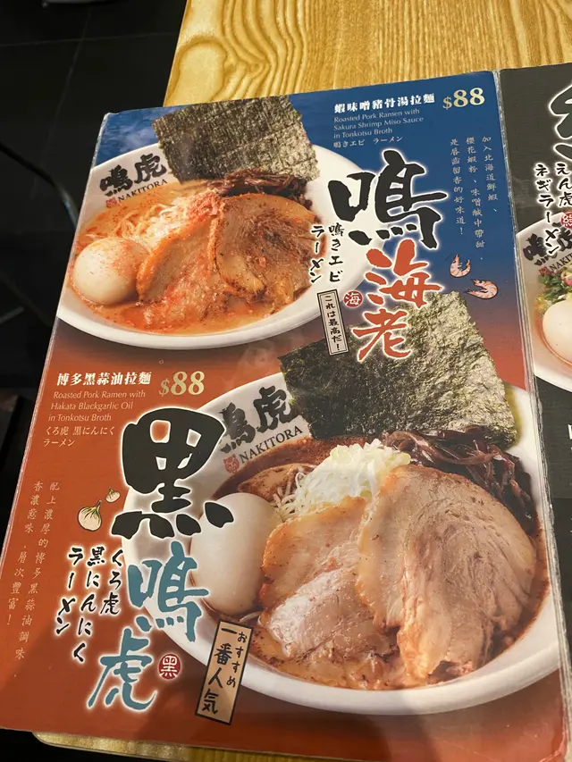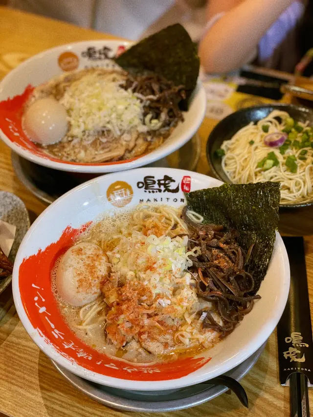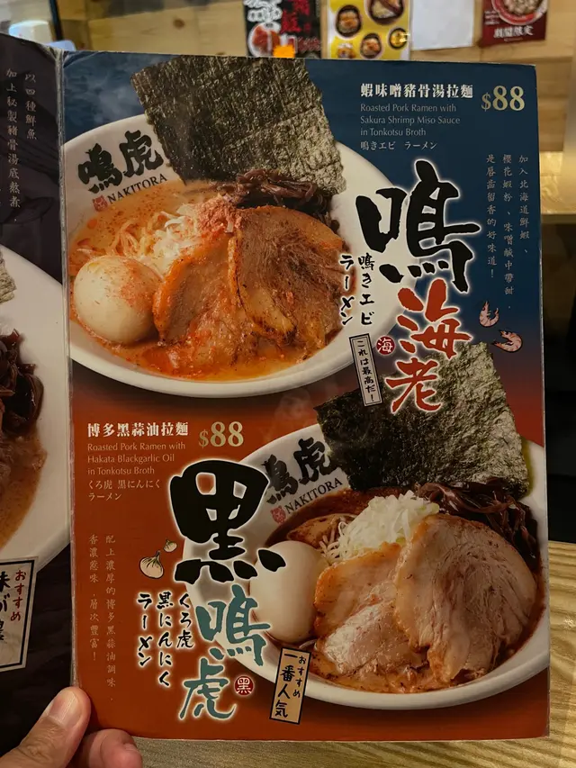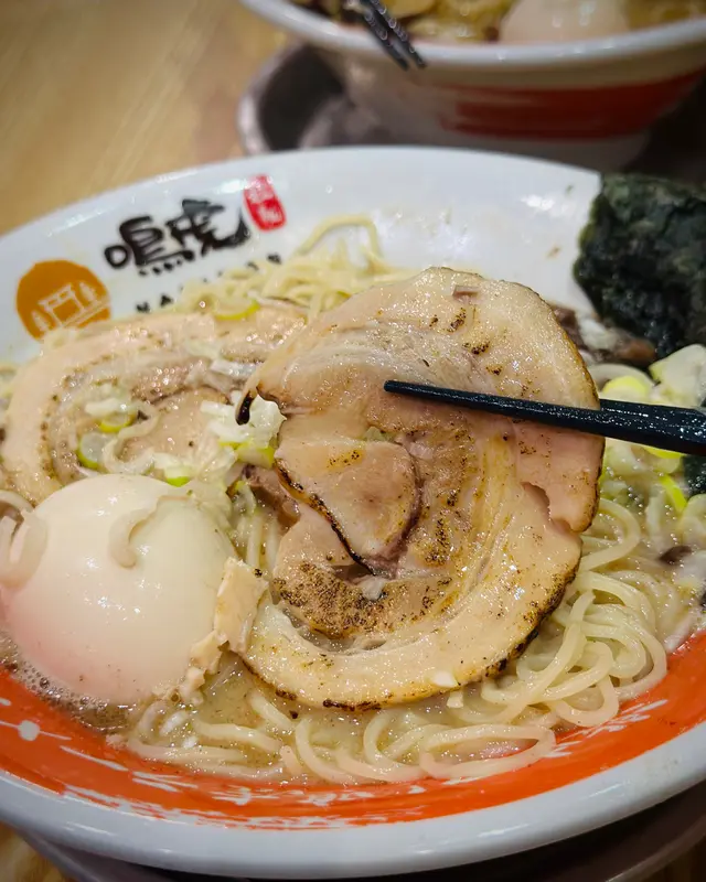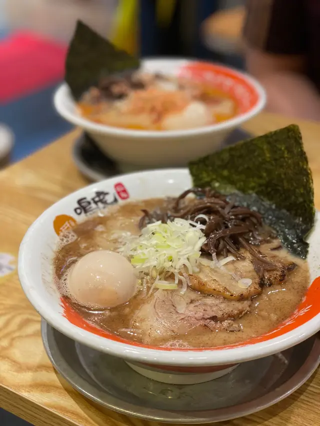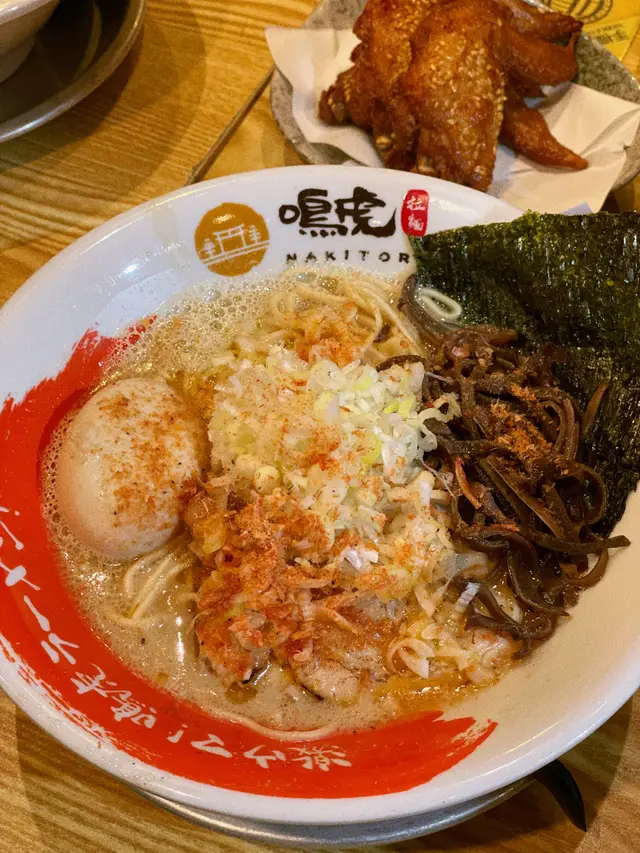 愈開愈多分店嘅鳴虎拉麵🍜今次我再嚟到土瓜灣北帝街分店,拉麵有多款口味選擇🤩除咗拉麵外,亦有日式丼飯提供😛鳴虎採用新鮮食材,嚴謹執行每一個烹調步驟👍🏻🦐鳴海老蝦味噌豬骨湯拉麵🍜加入北海道鮮蝦、櫻花蝦粉,味噌鹹中帶甜,係唇齒留香嘅好味道😛每一啖都係蝦嘅鮮甜味🦐另外拉麵配料有叉燒、半熟蛋、紫菜、黑木耳絲同蔥🤩叉燒屬於五花腩部位🐷肥瘦適中,肉質嫩滑,入口甘香😚🖤黑鳴虎博多黑蒜油拉麵🍜配上濃厚嘅博多黑蒜油調味,香濃惹味,層次豐富😛每一啖都散發黑蒜味🧄麵條幼細,口感彈牙,非常掛湯😛同樣有叉燒、半熟蛋、紫菜、黑木耳絲同蔥😝亦可追加配菜,好似椰菜同筍等😍另外鳴虎有多款小食提供🤩有餃子、炸雞、大蝦、沙律等等😝我就叫咗芝麻雞翼🐔香脆可口,雞肉juicy嫩滑💦…查看更多