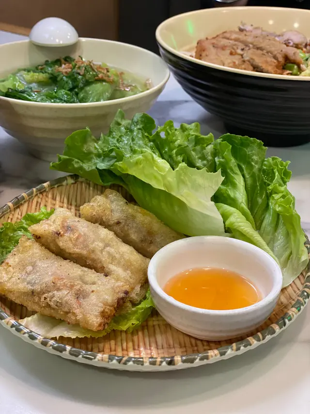 中環平平哋想食餐飯都不是這麼容易,所以依間越南嘢就平得來質素又唔差越南生牛河 $47 推薦指數🗯️:🌟🌟🌟就算係下午茶份量都唔少,牛肉食落唔會太乾,而且湯底味道都唔錯,唔會太鹹,性價比幾高嚴選香茅豬肉撈檬 $50 推薦指數🗯️:🌟🌟🌟咁依家天氣熱,有時都唔太想食湯麵這些,咁樣依間還有撈檬可以選擇;酸酸辣辣都好開胃,不過豬肉就比較乾身,唔太鍾意,想食撈檬的話建議食其他餸大理肉排飯 $47 推薦指數🗯️:🌟🌟🌟肉排調味都唔錯,濃味得來唔會太鹹,而且肉質咬落唔會太硬,不過份量偏少,食完晒啲肉排,啲飯仲有好多,最終變咗豉油撈飯越式春卷 追加3件$24 推薦指數🗯️:🌟🌟🌟它雖然不是我喜歡食的那種網紋春卷,但食落都唔錯,表面炸到好脆,而裏面的陷料也好足,就快爆出嚟咁清盛緜蒸粉包 追加3件 $33 推薦指數🗯️:🌟🌟🌟之前冇食落蒸粉包,所以唔知依間粉包正唔正宗,不過食落都唔錯,雖然我覺得皮可以再薄啲,不過調味做得幾好,就算唔點汁都夠味以上均是我個人觀感,每個人嘅口味各有不同,所以末必同每個人嘅用餐感覺一樣,如有不同,敬請見諒。查看更多