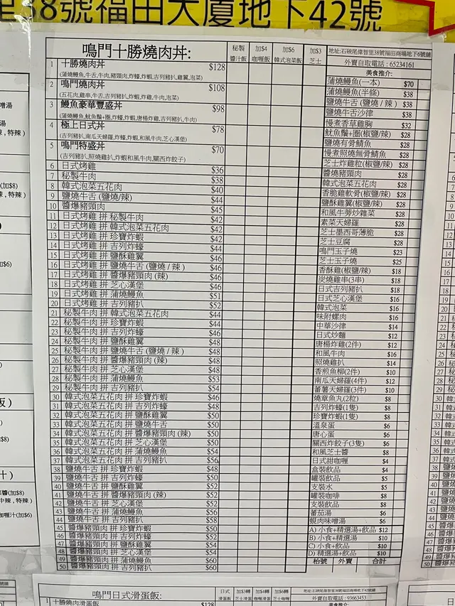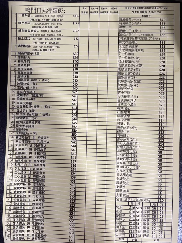 鳴門日式蛋包飯專門店 (石硖尾) 网址: https://s.openrice.com/QrLS0Qlm600 地址: 香港石硤尾偉智街38號福田大廈地下42號舖 电话: +852 93663453
