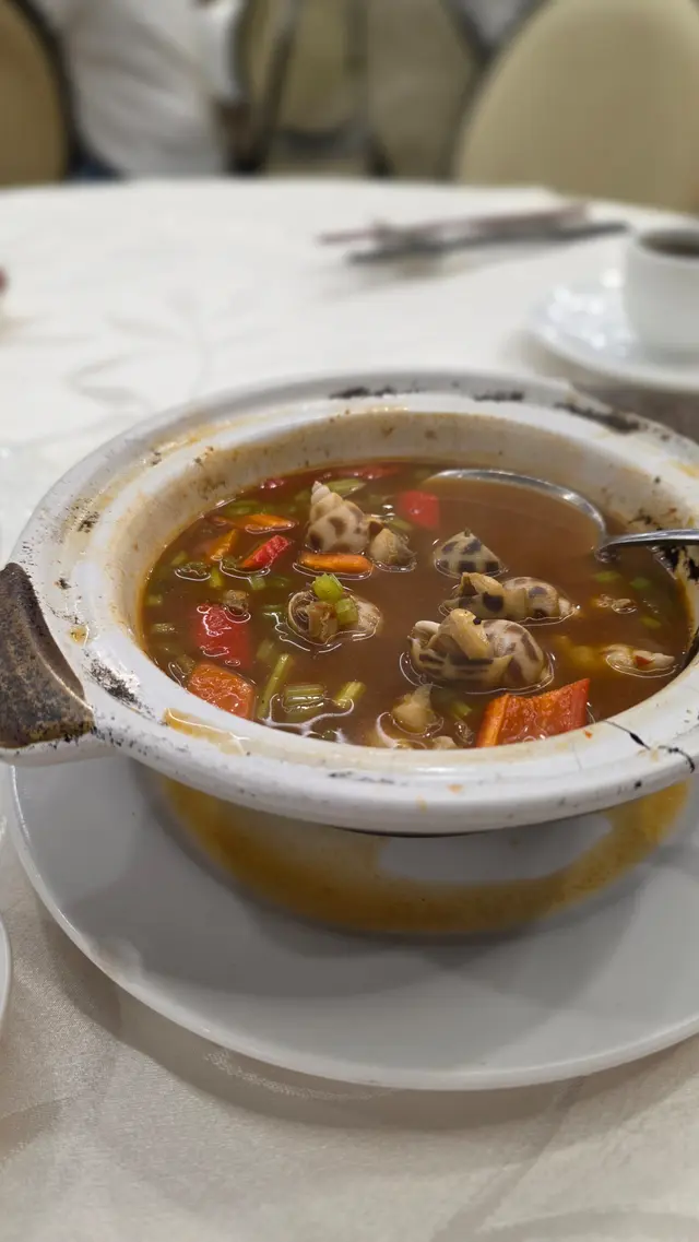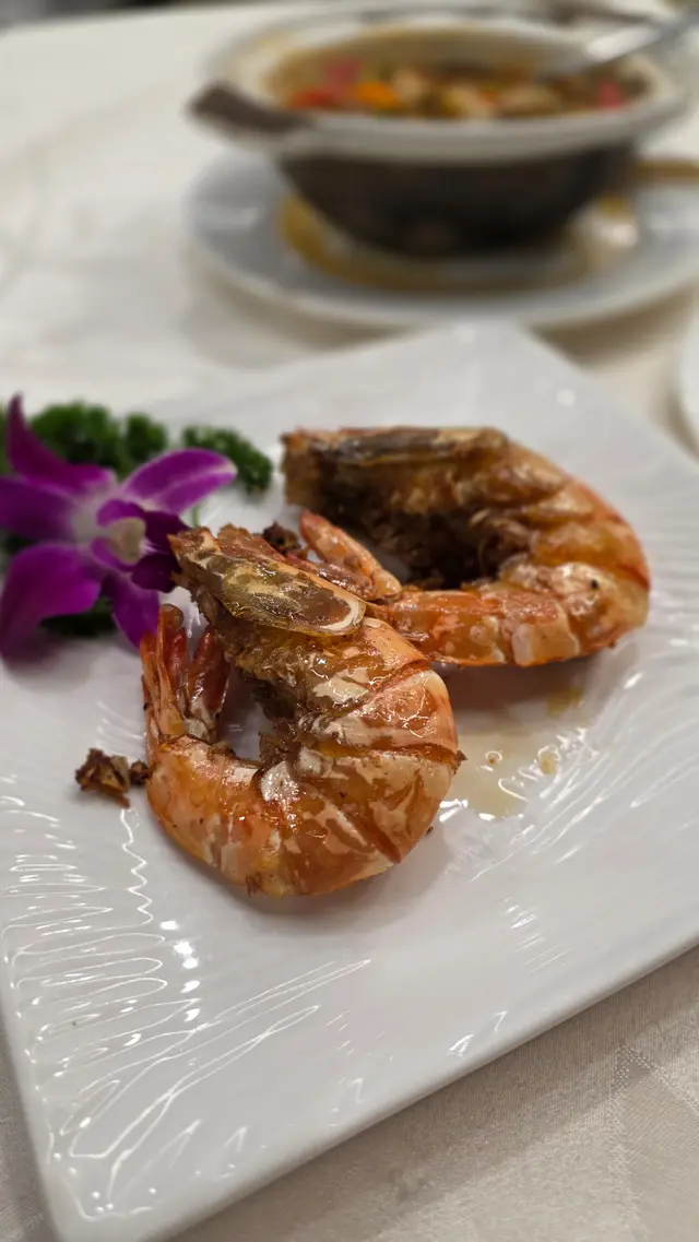 大概大部分人都會認識這幢6層高的建築, 以鮮艷奪目的紅橙色打造傳統中國風外牆的鴻圖樓 😃 以前在附近上班曾試過它的茶餐廳, 才發現原來1樓是酒樓, 今次就來試試看。除左單點之外, 也有不少款式的套餐, 由2人到1圍枱都有, 而這晚我們吃的餐數量是續位計算 😗 最少2位起叫。珍味海鮮宴 原價$288 現在優惠價 $238燒鵝伴燻蹄辣酒煮海花螺蒜蓉牛油焗大頭🦐原中雞燉翅果皮蒸鮮鮑魚手打魚腐浸脆梳白汁焗海鮮飯椰汁蘆薈糕燒鵝伴燻蹄用燒鵝燻蹄做前菜, 是一個可接受的開始, 燒鵝微微脆, 我認為不錯, 朋友則覺得不夠脆 🙃 燻蹄肉質就相對粗糙。辣酒煮海花螺整盤有廿多隻花螺, 直接嚐那個醬汁是有點辣的, 如果挑螺後直接吃就只是微辣, 不過朋友就覺得很辣, 所以只吃了一隻! 🙄 結果我吃了餘下的廿多隻 😶 海螺口感很爽脆, 不停咀嚼很有快感! 😂蒜蓉牛油焗大頭蝦果皮蒸鮮鮑魚大頭蝦蠻大隻, 而且很彈牙, 雖然外殼包圍, 但蒜蓉牛油的味都能浸入蝦裡面 ☺️ 鮑魚煮得有點久, 而且味道略淡, 跟大蝦截然不同, 幸好加了果皮在鮑魚上有吊味作用。原盅雞燉翅先不談它的翅仔, 湯頭非常甜, 用雞和豬肉燉出了多時製成, 並非味精湯 😍 這個餐很便宜都不會預期它的翅有多出色 🙂白汁焗海鮮飯通常最後這些飯都是隨便煮出來的, 在我跟朋友完全亳無期望之下竟然有驚喜 🤩 白汁非常濃稠, 飯用蛋炒底, 做到粒粒分明, 朋友明明聲稱飽肚還能吃了幾碗就知它的吸引力!…查看更多
