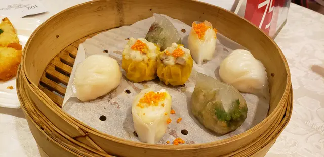 今日(3/5/2025)来旺角饮茶,下午二时多来到,唔驶等位,没有细枱,三个人,比咗张中枱,好阔落,位置近门口,冷气足。枱上只有二个茶壸,饮茶吹水,自然好快要加水,服务员加水速度快,服务态度好,上点心速度亦很快,赞。点咗五个点心晶莹鲜虾饺,睇个样都OK啦,食落唔错蟹籽烧卖皇,好实肉,有咬口鲜虾菜苗饺,份量足,啱食潮州粉果,无咗香菜,正鸡丝粉皮,朋友至爱,胡麻酱味够,青瓜爽口埋单$239,价钱合理。