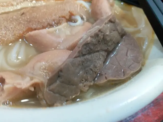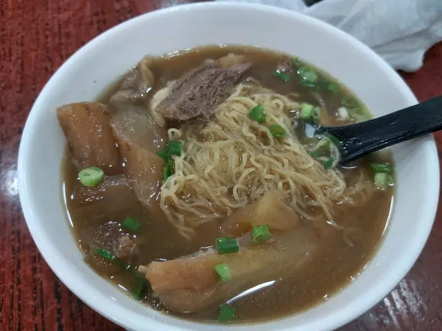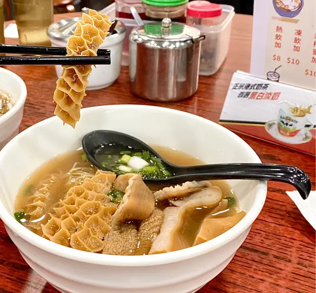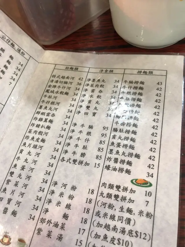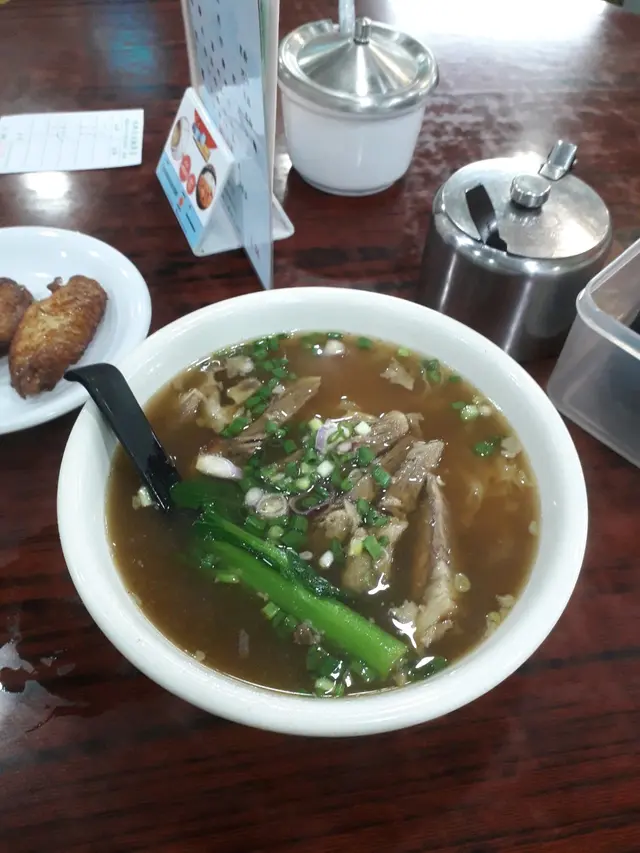 今日陪家人去將軍澳醫院覆診,覆診完嚟附近嘅富寧花園買藥材,順便醫肚,呢度食肆唔多,堂食嘅就只得一間茶記,同埋呢間粉麵店。間舖幾光猛,亦好整潔,但全部都係圓檯圓櫈,無卡位,係典型嘅粉麵店格局,相比斜對面間茶記,呢度人流多啲,照計比另一間好食啲。家人叫咗碗雲吞米線,$42,我就叫咗牛腩牛筋麵($46+14=$60),另外叫咗碟炸魚皮,$14,一共$116。最先到嘅係炸魚皮,用個白色膠袋包住,要自己打開,明顯係預先包裝,咬一口,硬嘅,雖然食得到,但一啲都唔脆,所以我決定將佢留返嚟浸湯麵。米線及湯麵同時到,粉量算係足夠,家人畀咗兩粒雲吞我食,而佢就試咗我嘅牛筋。家人猛讚個雲吞好食,話好爽,啲蝦好大隻,而就覺得啲雲吞包得過實,唔得鬆,同佐敦間麥文記或中環麥奀記完全無得比,即使沾仔記嘅雲吞都好食過佢。牛腩切得公公正正嘅條狀,但無牛肉味,牛筋腍得嚟爽,算係當中最好食嘅嘢。麵係正常嘅蛋麵,無鹼水味,話時話,依家好少食到勁多鹼水嘅生麵,一般都係用蛋麵。成碗麵最大敗筆係鹹!尤其是炸魚皮沒落碗湯度就更鹹,而且無新鮮嘅炸魚皮浸落湯度嘅微聲吱吱響,證明包魚皮唔新鮮,唔知放咗幾多日,食完碗麵後勁口乾,好唔舒服,要立即埋單,走去隔離間超市買支茶嚟解渴。如果有下次的話,我肯定唔會叫炸魚皮同牛腩,寧願食得清清哋,叫碗水餃、菜肉餃,甚或雙丸好過。…查看更多