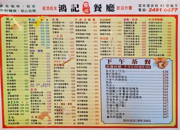 是日跟尖子行山, 回程来到深井, 随意地来到鸿记. 询问住在深井的大银行家朋友, 也没有听过这个名, 看来是新开的餐厅吧? 茶餐厅的格局, 分室内和室外, 刚好室外的位置已坐满, 只好选择室内. 笔者点选了常餐: 沙嗲牛面, 炒蛋方饱, 热华田. 尖子点选了炒三丝. 侍应先送上沙嗲牛面, 牛肉够淋, 沙嗲味浓, 一切正常.等了二十多分钟后, 侍应才告知炒三丝已售罄, 尖子只好无奈转吃猪排包. 由于只有一位厨师的关系, 又等了十五分钟才有炒蛋方饱和猪排包. 但重点昰, 尖子突然看见了蟑螂, 还要是大size的, 卫生情况令人咋舌, 味道再好也没有用, 什么胃口也没有了. 逃, 快逃.…查看更多