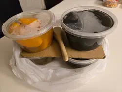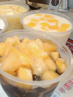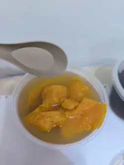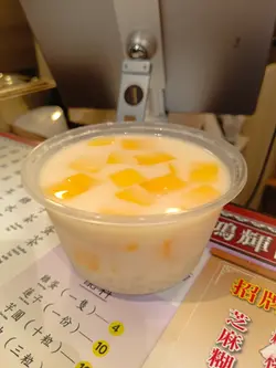 ,又有补脑、润肠之效,是十分有益之选。新派选择中,「芒果西米露」($33)是很讨人欢心的,椰奶底糖水很香甜,粒粒西米添加了爽口口感,而看照片也见,有非常多芒果粒,味道超香甜,好喝:)。在推介中有一款新品「桂花柚香凉粉」($35),店主说是美孚店限定,好奇一试。几道糖水中,以这个卖相最亮丽,味道很特别,因为加了忌廉,倒下桂花糖浆,又有啲脆脆米,而下面不单有凉粉,更有点椰果,令口感更加丰富
