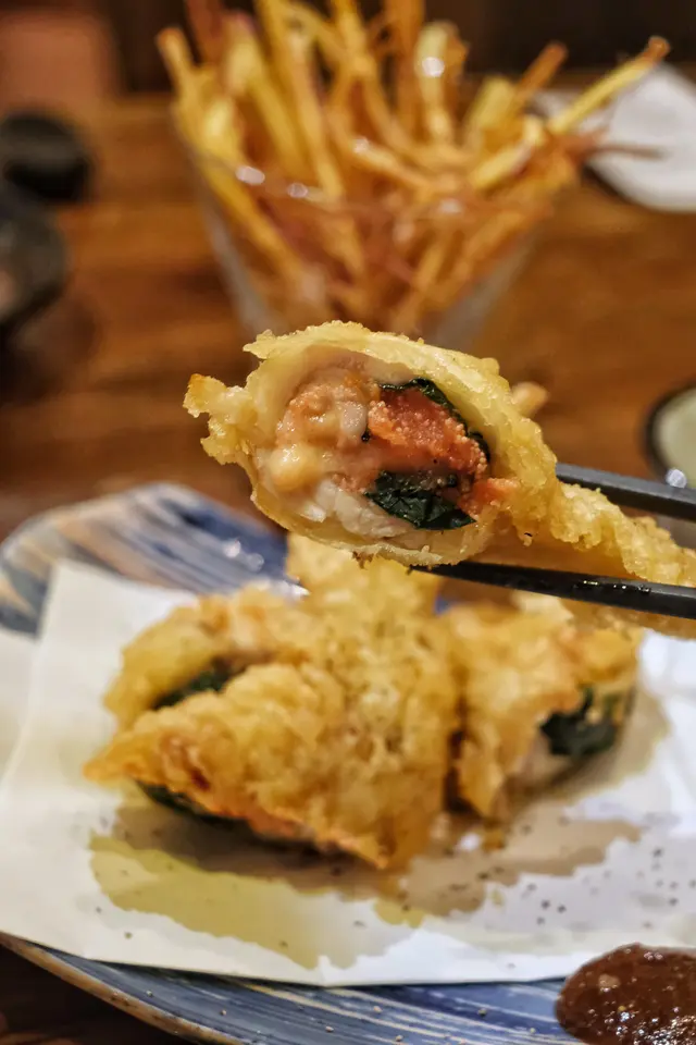 再嚟D2 Place 鵜舞食飯。今次主要想試呢度新推出嘅「德島美食祭」同埋「秋刀魚祭」菜式。🐟秋刀魚刺身秋刀魚刺身擺盤精緻,肉質肥美富彈性,仲帶有甘甜濃郁嘅魚鮮。秋刀魚秋天最肥美,被日本人視為「秋の味覺」的代表之一。以薑蓉、蔥花去襯托出秋刀魚油香係最正宗嘅配搭。🍠黑糖鳴門金時蕃薯條 配忌廉芝士沾醬 以甜度高、纖維少、口感佳嘅德島鳴門優質金時蕃薯,切成幼條,炸至金黃色,口感變香脆,加上黑糖糖漿,咬下去甜而不膩。配搭自加裝忌廉芝士醬,我係食到停唔到口!呢個小吃造型靚,打卡餸酒必點! 🧡神山香菇北海道海膽壽司徳島神山町出產嘅「神山香菇」肉質肥厚、口味鮮香。加上北海道海膽,勁甘甜濃郁,呢個創新嘅配搭超讚。🐓明太子芝士釀阿波尾雞翼 阿波尾雞係代表德島嘅高級地雞,低脂肪健康、口感酥脆。阿波尾雞翼肉味香濃,釀入福岡明太子、芝士及明太子辣味噌,炸至金黃色鬆脆,入面嘅雞肉仍然軟嫩多汁。🥟阿波尾雞餃子天婦羅 這晚阿波尾雞嘅另一美食。採用肉質紮實低脂、雞味鮮香濃郁嘅阿波尾雞做餃子餡料,餃子皮薄至半mm。這阿波尾雞餃子沾上輕薄酥脆的天婦羅麵衣,炸至外層酥脆、帶嚟無比驚喜嘅豐富口感。🥘鐵板油浸芝士有馬山椒德島釜揚丁香魚 日籍主廚以「釜揚」工法製作德島釜揚丁香魚保留丁香魚嘅鮮嫩。將丁香魚、芝士及兵庫縣有馬山椒以橄欖油放上鐵板加熱至焦香氣。山椒嘅獨特柑橘香氣及清爽麻味,能中和丁香魚腥味提升整體層次。以香脆多士沾上橄欖油、釜揚丁香魚、微溶芝士及山椒粒食別有一番滋味!🍋德島半田酢橘冷素麵德島縣半田素麵搭配德島名產酢橘製作清爽冷麵,Q彈微酸、清新開胃! 之前每次去日本都會揾嚟食,估唔到喺香港都可以食到咁優質嘅酢橘冷麵👍🏻作為居酒屋,呢度嘅飲品都有好多選擇。我哋就揀咗🍹Umai Calpis Soda鵜舞乳酸梳打🍺Double Cultured乳酸生啤啤酒與乳酸結合,兩種發酵技術創造出極致的啤酒雞尾酒。好甜好易入口!配搭炸物同鹹香菜式一流。🈵 整體嚟講,鵜舞呢次嘅德島美食祭+秋刀魚祭,將正宗日本食材原汁原味帶到香港。食材獨特優質、菜式美味新穎。炸物尤其出色 … 加埋居酒屋嘅輕鬆環境,仲好有氣氛𠻹!真係好有去咗日本旅行的感覺。…查看更多