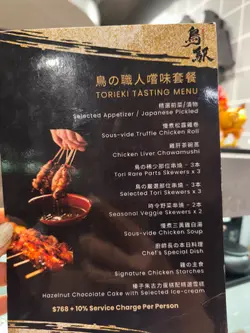 朋友极力推荐,今晚同老细两个人去试新店~搭住中环登山电梯直上到顶,原来有间走高级路线嘅烧鸟店!装修现代和风,最贴心系有locker放袋,可以轻松食饭唔使睇住啲随身物品👏试咗新推出嘅「鸟の职人套餐」,二人分享啱啱好:🥢 前菜日本大根+水茄配秘制脆脆酱,芝麻、脆蒜、香葱捞埋干酱油,脆卜卜,咸香开胃!🔥 稀有部位三连发鸡心爽口弹牙、鸡皮烧到脆卜卜、鸡脚筋烟韧有嚼劲,每款都系惊喜!🌿 严选部位三重奏大葱鸡肉香甜多汁(连葱都好味)、鸡翼外脆内嫩(超正!)、鸡柳柔软入味(劲juicy),火候控制恰到好处~🍢 时令烧野菜小青椒清新爽脆、秋葵黏滑带焦香,简单盐烧已经好正,仲有鲣鱼丝,提香提味!🍲 全场MVP慢煮三黄鸡白汤浓到黏嘴唇!忍唔住追加鸡白汤稻庭乌冬,汤底醇厚乌冬滑溜,老细都默默饮清光😆👨🍳 厨师长特制烧鸭肝配新鲜草莓同蓝莓,水果嘅清新完美平衡鸭肝嘅丰腴,邪恶得嚟唔腻口~🍚 完美收尾亲子丼日本蛋浆包裹嫩滑鸡肉,捞饭食超治愈!甜品豆腐雪糕+抹茶冻饼冰凉清爽。今次二人饭局非常satisfied,老细食得好满意,稀有部位特别得嚟又够矜贵~带埋张单一个月内仲送一杯mojito,系值得encore嘅好地方!…查看更多