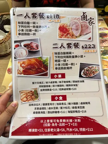 夜晚时分,想堂食烧味除了去茶楼仲可以去小店食!细细间人情咪与烧味都好足!醉鸭舌($62)鸭舌Q弹多肉,裹著仲有海蜇丝,酒香闻起来浓郁却不刺鼻,绝配啤酒或单独当小食。加$18 就可以升级变成套餐,又包餐饮又有饭!酒仙醉鸡卷($62)食落冇淡淡的酒香浓郁、肉质嫩滑弹牙,并配上杞子一粒,不仅提升养生价值,还能增添风味层次!杞子带来天然甜味,可以中和酒的浓烈,令到鸡肉的味道提升了!金牌烧鹅皇($94)鹅皮爽脆,肉嫩滑入味,卤水不重口却层次分明——八角的温润、姜片的清新,一点不油腻。底下铺满青瓜丝,吸饱汁水,变成爽脆配菜。鸭腿部分多肉,咬下去汁水四溢,配白饭能吃光一整盘。住家老火汤苹果雪梨南北杏零耳红萝卜猪滑汤,无味精老火汤,喝出家的温暖!套餐如果唔想饮餐饮可以转老火汤!仲要唔洗加钱,真系$0的惊喜,让整餐升级成「养生宴」。📍地址 :卤家 (元朗)元朗教育路68号兆丰楼地下10及14号舖…查看更多
