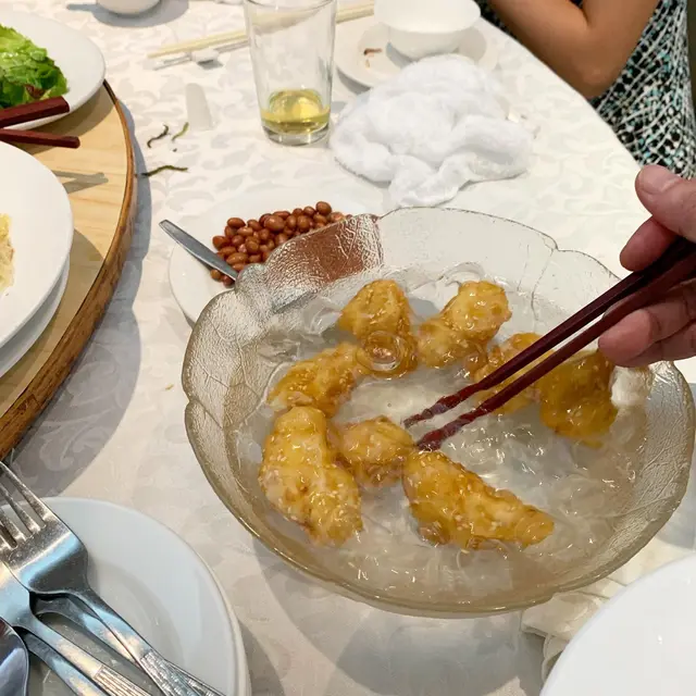 提起食京菜,就會想起去尖沙咀 鹿鳴春,這間老牌餐廳,生意不靠門面裝修,座位比較窄,燈光暗,餐具也畧為古舊, 但客人眾多一定要預早訂位.我們兩星期前已訂位, 今晚一行七人,點了個套餐,有頭盆,北京片皮鴨, 雞燉翅, 甜品,八款.  另加點了一個松鼠魚. 頭盆, 蜇皮併素鵝醬蹄醬蹄好肉好味, 海蜇絲爽口又大條, 素鵝調味及內餡做得出色.   前菜組合有水準.賽螃蟹入口好滑, 份量足, 內藏不少蟹肉,  加點黑醋更滋味.雞燉翅,材料非常十足,翅大大條, 雞湯濃厚,每人兩碗. 我最喜歡北京片皮鴨,師父先送上烤鴨原隻, 再為我們切片上碟.片皮鴨,  烤得皮脆肉香,切片厚薄好平均,餅皮圓滑, 越食越愛.上菜快, 干炸大蝦蝦肉彈牙, 爽口, 干炸更惹味.冬菇扒時蔬,  一般, 冇驚喜.松鼠魚,  如果加點松子 改為 松子魚更好.花素蒸餃, 用蒸籠上載,  熱騰騰, 皮薄餡靚.甜品 高力豆沙炸蛋白,好綿滑鬆化,  餡料是紅豆,不會太甜. 食物保持水準, 近期環球疫症, 座上少了遊客,   往日客人實在太多了. 查看更多