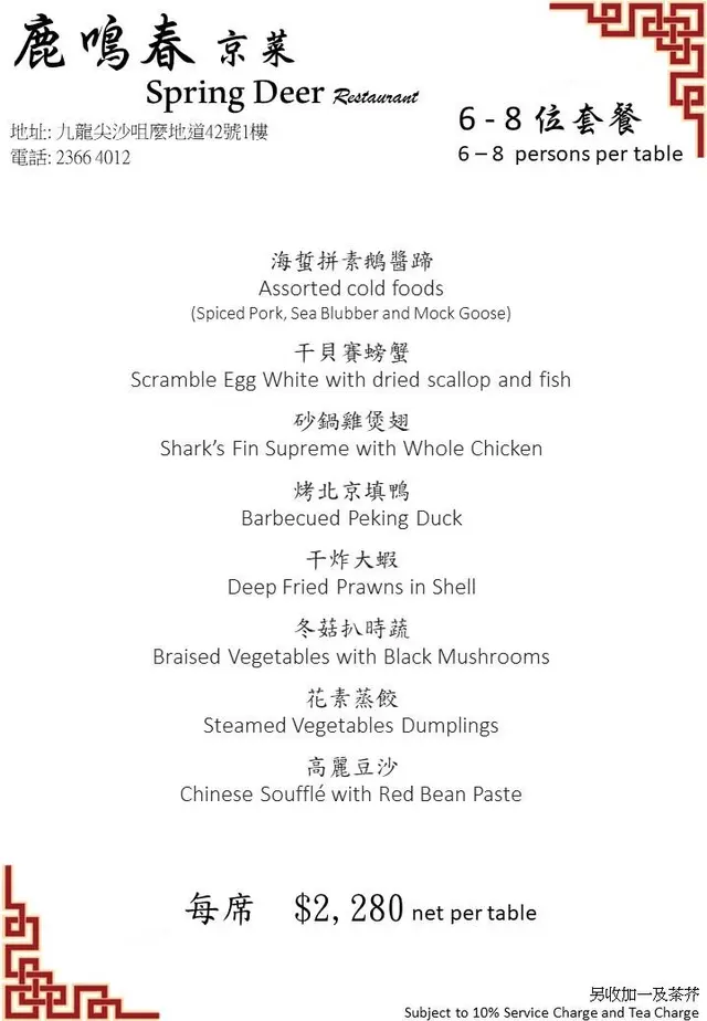 I knew the Spring Deer garden is a classic Peking restaurant in HK. Often have a lot of tour group dinning at this spot. I decided to give a try since I haven’t been there for a very long time. It was busy on Sunday lunch hour. The service was’t that good. Take a long time to order and asked for the bill at the end. I’ve ordered 1) Sweet & Sour Soup, the look wasn’t too good but surprisingly tasted OK. 2) The Fish with Wine sauce has cornstarch on top of the fish meat. Has no Chinese wine taste and didn’t look fresh, the fungus was OK. 3) Chilli Prawn was disgusting, the so called King Prawn was covered with a thick layer of bread crumbs, no spice what so ever. After break the bread crumbs apart and you can find the tiny shrimps inside. 4) Eel with spring onions, it was so oily and impossible to eat. I don’t understand a restaurant will a long history can serve just a terrible food. The location wasn’t great and feels ghetto, the only good is the price, very expensive for the shit quality and services. It was a very bad experience and completely wasted my time and money for this Sunday lunch. 查看更多