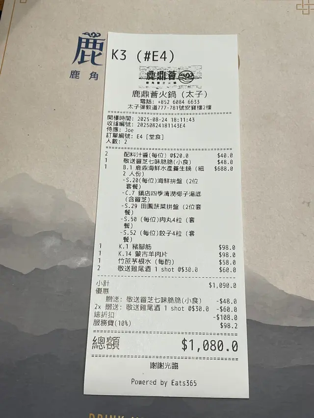 鹿鼎薈鹿角靈芝火鍋料理 (太子) 网上订位享低至85折优惠并赚Rice Dollars 网址: https://s.openrice.com/QrLS09YCF00 地址: 香港太子彌敦道777-781號安寶樓2樓 电话: +852 60846633