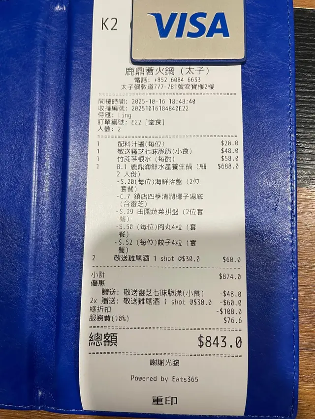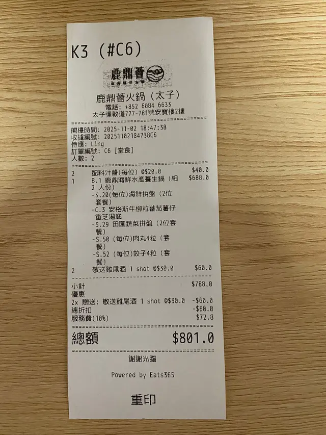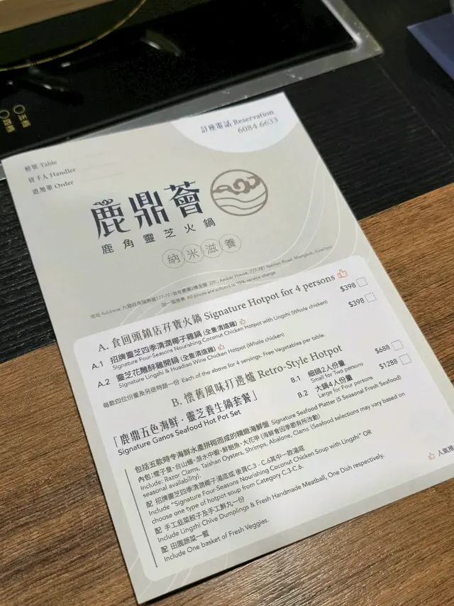 尋晚喺太子附近行街,見到呢間新開靈芝主題火鍋店,趁個溫度仲涼涼地,一於快快手打多次邊爐。餐廳座位做到好似每枱有個包廂空間咁,基本上唔會見到其他枱的客人。招牌靈芝四季清潤椰子雞湯底 (含靈芝及清遠雞半隻)$208湯底好足料,有齊靈芝片、馬蹄、竹蔗茅根、椰子肉等嘅材料,店員建議我地落食物之前要試一試個湯底,個湯底果然好清甜,而且入喉非常舒服,好有清潤感覺。跟埋個湯底有半隻清遠雞,半隻雞份量唔少,而且肉多唔肥,肉質嫰滑有彈性,食落冇雪味。西班牙黑毛豬片 $138有8大塊黑毛豬片,食落肉質細嫩且富有彈性,帶有濃郁豬肉原味而冇豬騷味。自家靈芝響鈴 $68唔知係咪因為響鈴面舖滿靈芝粉嘅關係,呢度嘅響鈴味道多個層次,食到淡淡藥材味。本地牛肉丸(8粒)$88呢度牛肉丸唔係平時食到口感較扎實嗰種,而係有啲似飲茶食到蒸牛肉球嗰種質感,所以肉質會再嫰滑啲。靈芝海中蝦滑 $98蝦滑都有加入靈芝粉,同埋除左食到彈牙口感外,仲可以食到有一粒粒新鮮蝦肉。菠菜苗 $48有機玉米 $38呢度蔬菜類食物都好新鮮,食落好鮮甜,可以中和整餐火鍋肉食嘅油膩。瑰荔堂煌 $108(買一送一)我地一入枱,店員就拎左兩杯呢款雞尾酒welcom drink俾我地試飲,店員介紹嗰陣講係話用左靈芝白酒去調配,而呢杯雞尾杯確實係非常容易入口,因為係加左橙汁同蜜桃糖漿關係,好啱女仔飲,加埋有買一送一優惠,我地最後都再order左兩杯。另外想讚一讚呢度嘅服務做得好好,我地食左差不多一半時間左右,有店員突然主動提出話想落啲靈芝粉喺我地個湯底度,個作用係可以減少湯底入面嘅嘌呤,食打邊爐可以keep住健康啲,當然啱哂我地啦。…查看更多