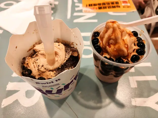 甜品站終於換新嘢,黑糖珍珠奶茶雪糕,即時去試!左邊麥旋風,右邊新地,價錢相差好多,新地只要六蚊,麥旋風要十幾,但其實大家都係同一款雪糕,同一堆珍珠,當然麥旋風會有埋曲奇碎增添口感,但如果初試嘅唔建議試麥旋風啦,啱食又係麥旋風fans先再叫。講番正題,黑糖味唔算重,但係雪糕嘅珍奶味好足,珍珠都唔少,頗煙韌,堅好味,幾值得試!雖然呢類合作唔係無出現過,但總有人覺得幾伏,但試完真心值得試!記得係新地,平太多...查看更多
