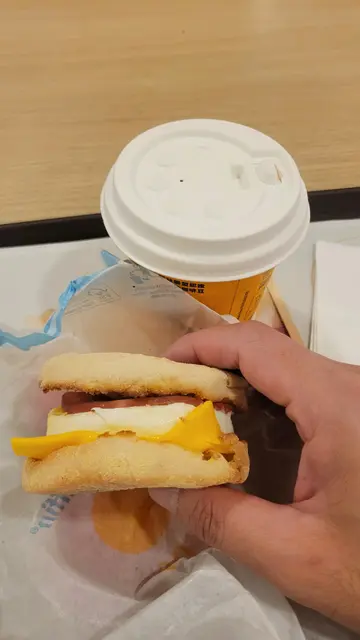 今期早餐又出新野饮,系朱古力咖啡,老公成日问我咁咪即系latte? 但我又唔觉,网上好多人都话冇咖啡味,劲甜,根本系朱古力嚟,但我试饮过又另一回事。首先佢奶味唔重,完全唔似latte。 甜度我比6/10分,系中甜。咖啡味系有少少,占4/10。朱古力味我都饮到少少,但真系好少,我比3/10。所以呢杯咖啡,我觉得几好饮,我唔钟意斋啡,成日想系自己杯咖啡加d朱古力粉,饮落少少朱古力味,但自己沟唔到。呢杯咖啡味同朱古力味好岩我,系我想要既少少浓度,但如果甜度可以再低少少就极好。因为配早餐有个烟肉蛋汉堡,成份系$25.5。呢个组合我觉得唔错,我几钟意。…查看更多