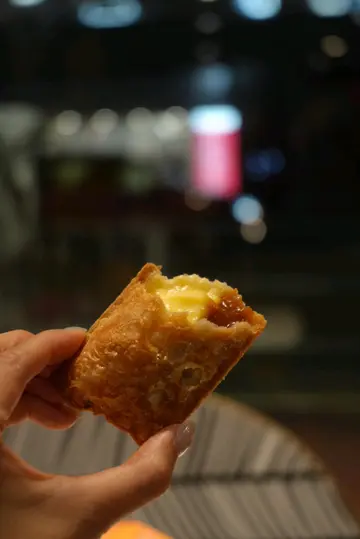 麦当劳出咗Chiikawa系列,是近来可爱系快餐最疗愈嘅一款!🧡蟹肉可乐饼汉堡套餐$47.50今期两款新口味嘅其中之一,听讲蟹肉可乐饼更好食,几钟意个包身嘅口感,而且有大量生菜好清新,仲有个酱汁都好好味,至于主角蟹肉可乐饼,意外地有好多蟹肉软绵绵的,虽然佢唔系日本正宗嘅可乐饼,口感creamy𠮶一种,但味道算唔错。🩵中薯条配樱花虾味调味粉(+$3.00),Shake Shake薯条不嬲都好好食,樱花虾味主调就系海鲜嘅味道,正常冇惊喜,但Shake Shake薯条实在太过瘾,如果薯条能够新鲜热辣啲就更加好,等餐等得太久。❤️焦糖炖蛋批(+$11.50),好多人话呢个批太甜,霖迪感觉还好吧,焦糖就系好典型嘅味道,炖蛋其实系吉士,几讨厌吉士但呢个可以接受,加埋脆脆嘅批,还好吧,好食过其他奇怪味道,但前题系接受得到甜。💚Mango Frappe (+$6.00),好多人都唔知道想要Chiikawa,系要点套餐连Mc Cafe,呢杯芒果冰雪都几好饮,个芒果味非常之浓,拍得住果汁店嘅水准,而且会有少少芒果肉,不过饮到最后会觉得好甜,唔系Chiikawa粉丝都可以试吓呢杯。今期仲有个新品森永焦糖雪糕,好想试但如果食埋就会引发糖尿病🤣,还是下次再试吧。特别要赞一下这家Mc Cafe的店员,下单的时候问到特饮应如何下单,有位男店员非常耐心地告诉我,事后还亲自示范,今时今日如果人人都有这种服务态度,那么香港就会成为服务之都了