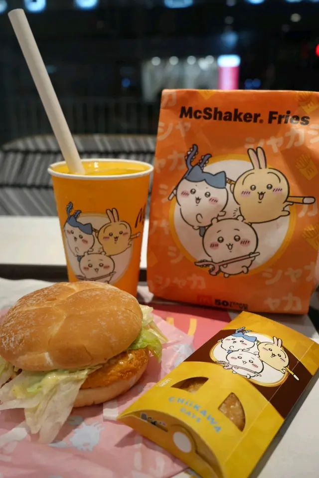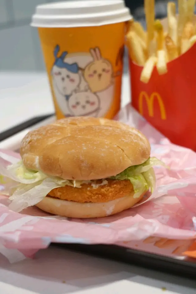 麥當勞出咗Chiikawa系列,是近來可愛系快餐最療愈嘅一款!🧡蟹肉可樂餅漢堡套餐$47.50今期兩款新口味嘅其中之一,聽講蟹肉可樂餅更好食,幾鍾意個包身嘅口感,而且有大量生菜好清新,仲有個醬汁都好好味,至於主角蟹肉可樂餅,意外地有好多蟹肉軟綿綿的,雖然佢唔係日本正宗嘅可樂餅,口感creamy嗰一種,但味道算唔錯。🩵中薯條配櫻花蝦味調味粉(+$3.00),Shake Shake薯條不嬲都好好食,櫻花蝦味主調就係海鮮嘅味道,正常冇驚喜,但Shake Shake薯條實在太過癮,如果薯條能夠新鮮熱辣啲就更加好,等餐等得太久。❤️焦糖燉蛋批(+$11.50),好多人話呢個批太甜,霖迪感覺還好吧,焦糖就係好典型嘅味道,燉蛋其實係吉士,幾討厭吉士但呢個可以接受,加埋脆脆嘅批,還好吧,好食過其他奇怪味道,但前題係接受得到甜。💚Mango Frappe (+$6.00),好多人都唔知道想要Chiikawa,係要點套餐連Mc Cafe,呢杯芒果冰雪都幾好飲,個芒果味非常之濃,拍得住果汁店嘅水準,而且會有少少芒果肉,不過飲到最後會覺得好甜,唔係Chiikawa粉絲都可以試吓呢杯。今期仲有個新品森永焦糖雪糕,好想試但如果食埋就會引發糖尿病🤣,還是下次再試吧。特別要贊一下這家Mc Cafe的店員,下單的時候問到特飲應如何下單,有位男店員非常耐心地告訴我,事後還親自示範,今時今日如果人人都有這種服務態度,那麼香港就會成為服務之都了
