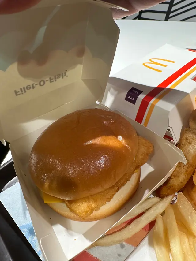 今日我同朋友點了雙層芝士孖寶、鱈魚柳堡,再配上一杯 McCafé 的咖啡,簡單快捷又美味。雙層芝士孖寶對是經典中的經典,兩層牛肉餅搭配雙層芝士,加上酸黃瓜和醬料。牛肉餅雖然不算厚,但搭配芝士的鹹香,都好滿足。接著是鱈魚柳堡。炸鱈魚柳搭配沙律醬和芝士,味道比較清新。鱈魚沒有腥味,搭配鬆軟的麵包滿足。McCafé 的咖啡向來有不錯的評價,這次我點了一杯 McCafé 的即磨咖啡,咖啡香濃,口感順滑,搭配漢堡一起享用,非常解膩。總的來說,麥當勞 價格實惠,是快速解決一餐的好選擇,McCafé 的咖啡也值得一試。…查看更多