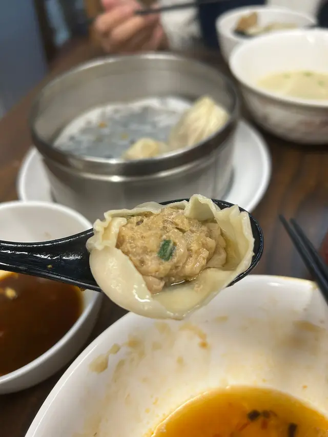 隔咗一排冇食到,突然之間心掛掛,決定同朋友去食返餐先雲吞擔擔麵套餐 $69首先叫咗個雲吞擔擔麵,3個鍋貼,加錢叫豆漿。擔擔麵湯底叫咗多湯少辣,入面有雲吞同肉碎,湯汁質地質地濃稠,有明顯嘅花生香味,麵條都幾掛汁。 鍋貼口感香脆可口,難怪係米芝蓮連續10年嘅推介雲吞麵套餐 $64另一個叫咗雲吞麵,轉超必食香辣湯底,3個生煎包,及加錢叫豆漿。必食香辣湯底都係要加錢叫,驚太辣叫咗少辣。 湯底有啲似椒麻味,相對更開胃,同樣有雲吞、肉碎、蔥花,雲吞size啱啱好,湯底仲突顯咗雲吞嘅鮮味。生煎包外脆內軟,餡料調味適宜,唔會太鹹。麻辣紅油炒手 $30另外叫咗一份麻辣紅油抄手,辣度叫咗小辣,抄手有十幾粒,亦都加咗唔少肉碎,同雲吞比炒手會細粒啲,包裹住嘅醬汁啲都會更多,味道都會重啲,香辣美味,值得一試。蟹粉小籠包 $44小籠包 $32分別叫咗兩粒嘅蟹粉小籠包,同四粒嘅小籠包,小籠包皮薄餡靚,入面包裹住滿滿嘅湯汁,分別在於前者帶有蟹粉獨有嘅鮮甜,後者就食到常見小籠包嘅嗰種多汁感黃金之翼 $33叫咗3隻黃金之翼,其實即係常見嘅鹹蛋黃雞翼,外皮香脆,包裹住滿滿嘅鹹蛋黃,趁熱食真係好邪惡既美食啊…查看更多