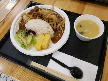 约左朋友兼旧同事整公仔workshop开始之前睇下附近有咩好食又无咁多人结果大家都同意食玉子烧以为supermarket入面嘅档质素应该比较普通点知有意外惊喜wo首先佢选择好多玉子烧、饭、乌冬等等都有啲玉子烧够厚 好滑身而且带甜味好讨好而咖喱饭都唔错wo啲牛肉入晒味又唔孩口洋葱好甜好多而个炸鸡切成条状炸得几好味wo啲饭都粒粒分明又有只素增加口感的确唔错!面豉汤咸度刚刚好唔会太咸啲昆布又多成餐饭都食得几开心!…查看更多