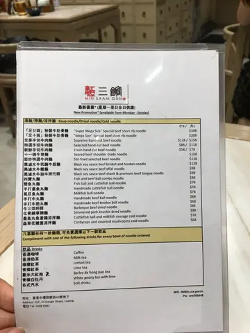 之前同事话带我食蒸饭,原来系银杏馆对面呢间面三馆。一坐底,店员话冇做蒸饭喇,不如试下食面。面就偏贵少少(即系我会俾$100食饭餐但$70食面就叫偏贵啦)。见到汤底都有黑汤白汤,几得意,就是但试下双丸扁蛋面,配料任加,你想落晒都得。前菜or餐饮二拣一,我选左个牛舌。前菜份量都够,只系嫌个娘惹酱唔够味。面就可以食硬面,我个人钟意面硬。个汤几特别,好重药味,似新加坡加中国风。粒墨丸好弹亦食到有真墨鱼,加分。整体ok,如果唔嫌重口味,可以一试。