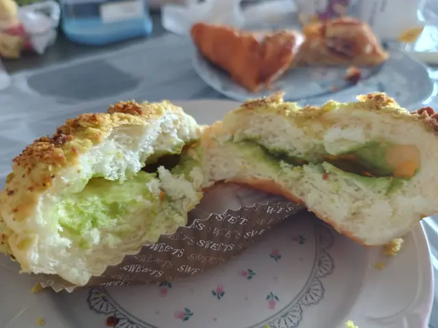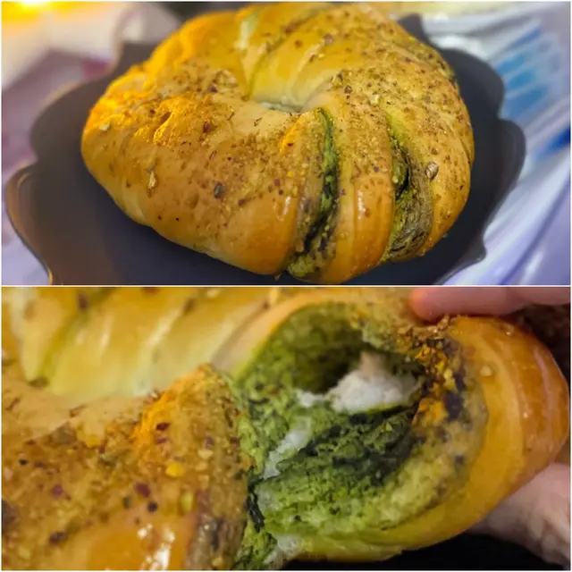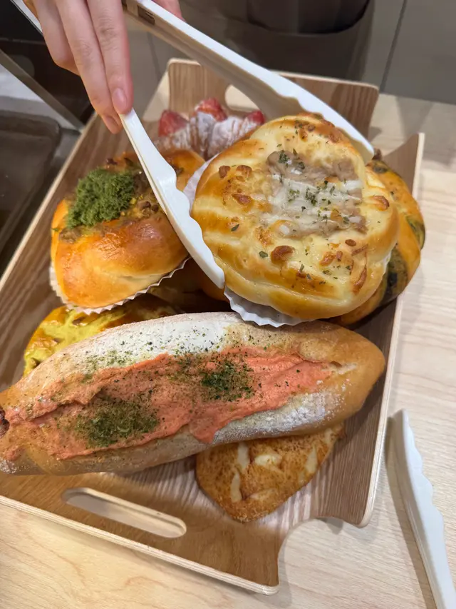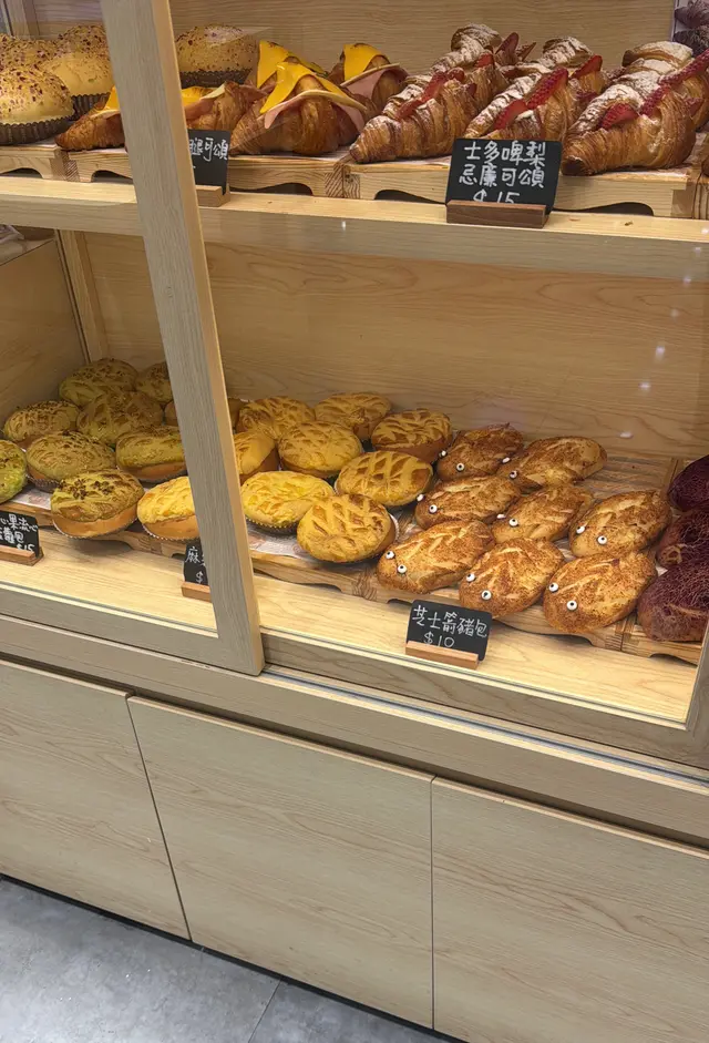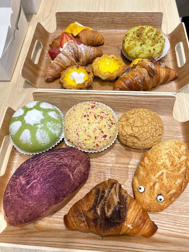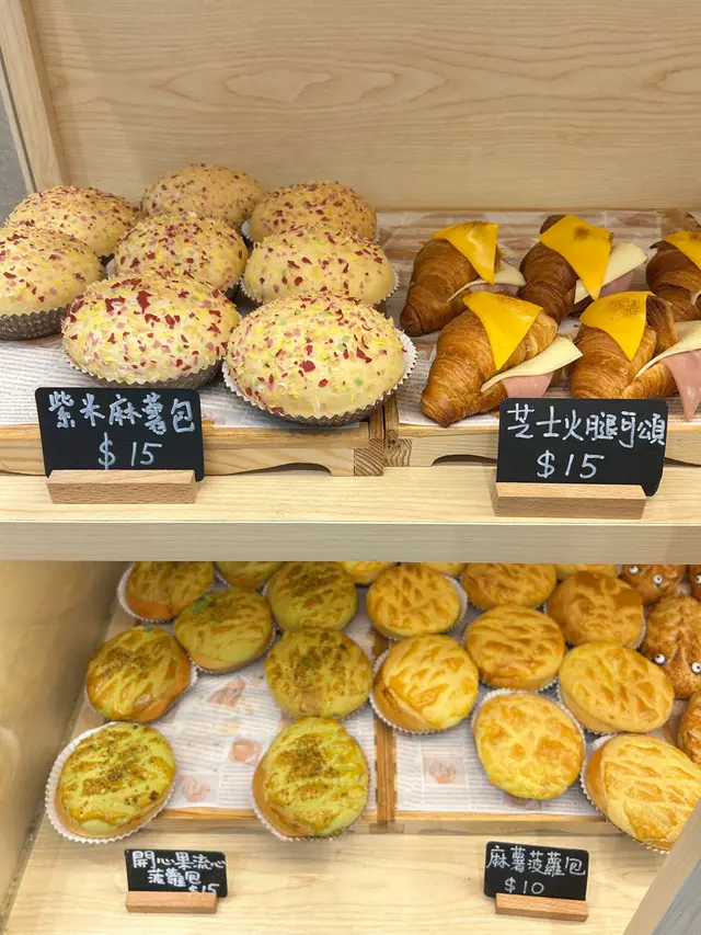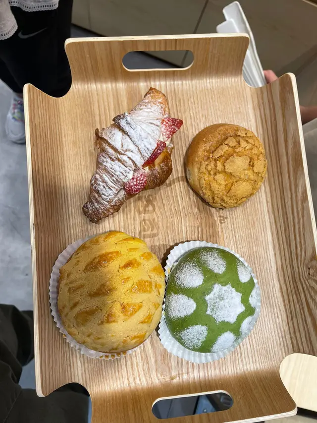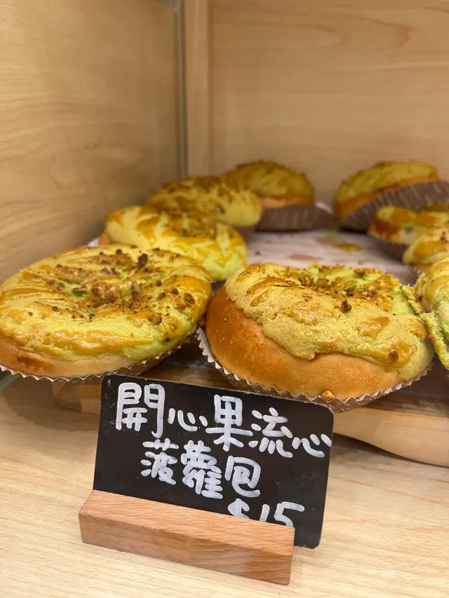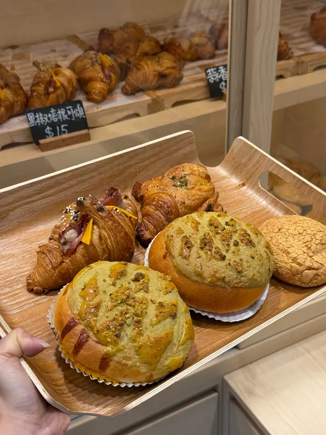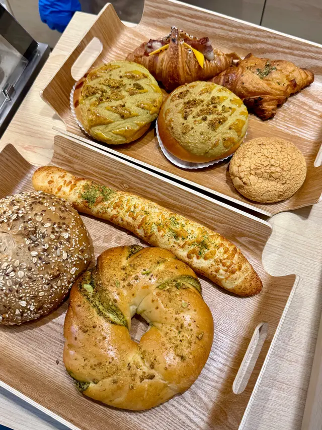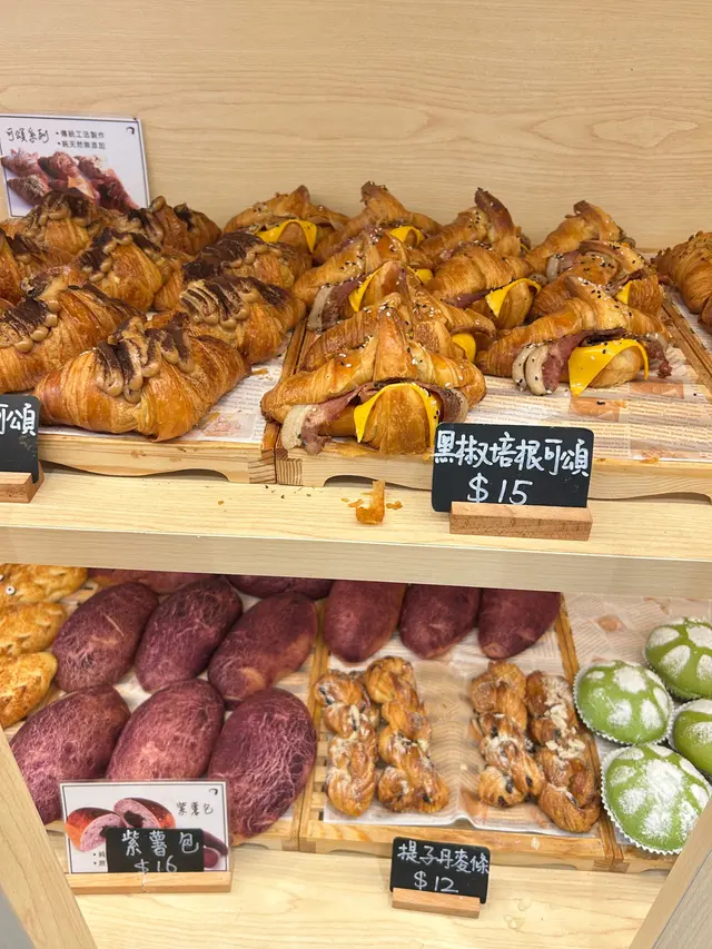 榴槤皇冠一掰開濃郁的榴槤香氣撲鼻而來,果肉綿密如奶油,甜中帶微苦的成熟榴槤韻味,外層酥皮輕薄鬆化,入口即溶,榴槤愛好者的極致享受。肉鬆卷鬆軟的蛋糕體包裹滿滿肉鬆,鹹香交織微甜美乃滋,肉鬆酥脆帶點纖維感,每一口都是鹹甜平衡的滿足,簡單卻讓人上癮。海鹽焦糖可頌可頌外層酥脆到掉渣,內裡蜂窩狀組織柔軟帶韌性,焦糖醬濃郁香甜,海鹽的微鹹巧妙中和甜度,吃多也不膩,層次感十足。麻薯菠蘿包經典菠蘿包酥皮香甜脆口,咬開後驚喜藏著Q彈麻薯,糯米香與奶香交融,冷吃麻薯更帶嚼勁,熱食則有流心效果,雙重口感超療癒。開心果菠蘿包酥脆菠蘿皮灑滿開心果碎,內餡是濃稠的開心果醬,堅果香氣濃郁,微鹹的開心果與甜酥皮意外和諧,每一口都吃得到真材實料。開心果扭紋包麵包體柔軟帶奶香,螺旋紋路中捲入滿滿開心果醬,烘烤後堅果香更突出,尾韻帶點鹹味,適合喜歡濃郁堅果風味的人。紫薯包天然紫薯餡綿密濕潤,甜度自然不膩,麵包體蓬鬆帶淡淡紫薯香,表皮微脆,整體樸實卻讓人回味,健康與美味兼具。麻薯蛋撻酥脆撻皮承載滑嫩蛋漿,中心藏著一大塊軟糯麻薯,蛋香與糯米香交融,熱食時麻薯拉絲,冷吃則更Q彈,創意與傳統的完美結合。紫薯抹茶核桃包紫薯麵包體鬆軟,內餡是抹茶奶酥與核桃碎,抹茶微苦回甘,核桃增添脆度,紫薯的甜平衡了抹茶的澀,風味複雜卻和諧。…查看更多