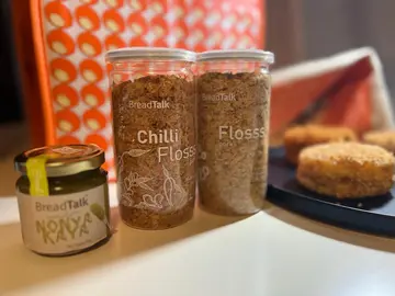 系佐敦食完晚饭,见到「BreadTalk」人流不断,就打算买个面包来做早餐🥐但入到去见到好多款都想试,买下买下就唔停手啦🙂位于佐敦「BreadTalk」供应多款手工面包、班兰蛋糕、蛋卷、肉松等烘焙美食。我就买左以下几款来食🤪扁脆牛角包6款礼盒装 $139原味・朱古力🍫・草莓🍓・抹茶开心果🍵・肉松・至尊🍕近期大热‼️见到急不及待都要买来食❤️扁脆牛角包卖相非常吸晴👀,经压扁后的牛角包外型扁平大块🥐,口感薄且酥脆,入口松化,有6款味道选择,我一次过买晒返黎食🤣班兰戚风蛋糕 $24 全部都是即日新鲜焗制,闻起来有阵阵班兰清香,入口不会太甜,蛋糕食落去软绵绵又够湿润。香芋肉松面包 $32在面包里面加入软滑的香芋提升奶香味🍞,而在面头再铺上一层咸香嘅肉松,味道咸甜不腻。原味樽装肉松 $49我好钟意食肉松的🤩呢款肉松口感松化,加入独特配方烘炒制成,咸甜适口,可以夹面包,又可以捞饭食,甚至当作零食都可以😙原味蛋卷$38咖啡味蛋卷$38蛋卷蛋香味浓郁,入口十分松酥,咖啡的味道香浓不甜,味道柔和❤️好美味❗️✨️所有饼食均采用一小包独立包装。