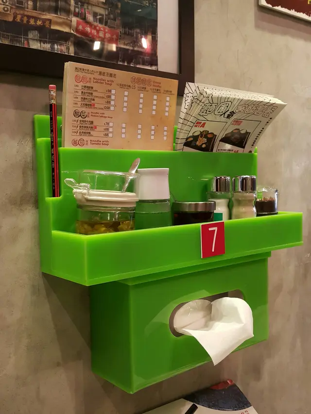 話說食肆難做,入場容易守業難,日久見真章。麵圃年前開業,曾光顧兩次,當時覺得湯頭出色,材料有心思,印象良好,奈何要在地鐡站走一段路方能到達,久未再光顧!是日周日,在IFC看完電影,反又不介意長途前往,重溫舊夢。超級細小的店舖,裝潢十分有特色,懷舊麵店的風味,但卻舒適企理。入門左方是開放式做麵的廚房,右方是掛滿懷舊風味的裝飾,例如舊的電影海報及報紙,走過一條峽窄的巷子,方是用餐桌椅區。亦有復古式麵店吧枱位,適合單身客人。個人來說,非常欣賞這個擺放餐牌調味料的掛牆架的設計,疑似度身設計,剛好放上六款調味料,就是紙巾亦可掛上,省位得很,塑膠料子,青綠顏色,遠望似郵箱。兩款辣醬,左方用青辣椒做的,都幾辣;右方是豆鼓辣椒,記得去年是表明是余均益標誌的出品,懷舊風味十足,但現標誌失去,換了來源,嚐一嚐,香味真的有所不及,不只是崇尚名牌,醬油古方有其可取。下午茶餐有三款麵選擇,另加小吃或飲品,售價$50,周日也有供應,以現在外吃的市場價錢作比較,可算實惠。我選了天婦羅龍蝦湯薯粉,及話梅茄子;同伴點同樣的湯頭加素麵及溫泉蛋,小吃大家可以分吃。店員自動送上暖水兩杯,服務週到。天婦羅龍蝦湯薯粉天婦羅分開上,實在不分上不成,如果直接放在麵上,幾秒便已經腍了,變成慘不忍睹。天婦羅即點即炸,炸醬薄而脆,酥香熱辣,蝦肉鮮嫩,備以鮮檸檬及沙律醬,除客人意願添味,得分;可惜身軀瘦弱得可憐,有些小家,依稀記得,去年的大只得多!橙褐色的湯頭,看似濃郁,但味覺無期望的滿足,嚐一口,又在失分,似濃非濃之龍蝦湯味,湯頭中有蝦膏的口感,但味道有些搶,疑似加添了人做香味,並非百分百自然,跟店子剛開始時有別!湯頭內有粟米丶青菜及海帶。我的薯粉不俗,晶瑩煙靱不過腍。食伴的素麵亦十分掛汁,同樣即點即做,對辦。話梅茄子車厘茄子是一可塑性甚高的料子,以話梅醃之,茄子全身鹹酸入味,入口爆出之水份同樣醒胃,非常合我心意,我的必點小吃,一客有6粒。溏心蛋今時今日,溏心蛋大行其道,實無出錯之理,見賣相流心有光澤已知無失準,入口軟滑,隨即溶化,一客一只雞蛋分半,二人分吃剛好。$50計的水準,不過不失,但似乎大不如前!今天周日下午三時半踏進,並無其他客人,不知道其他日子生意如何?但難道淡了點,材料上省一點,才是營商之道。…查看更多