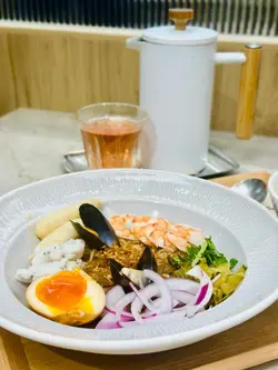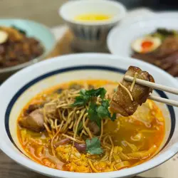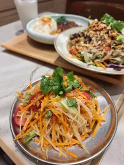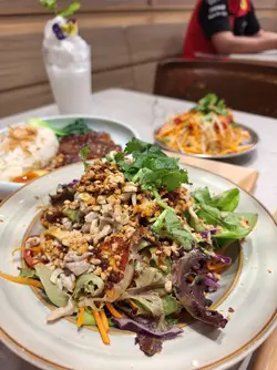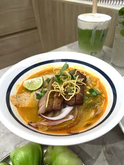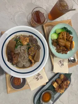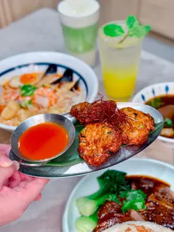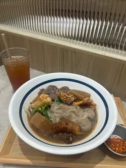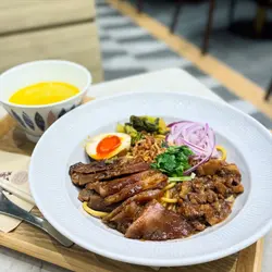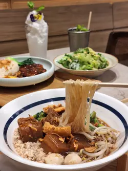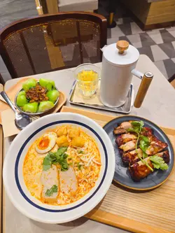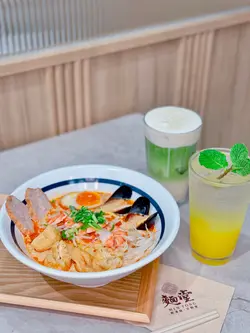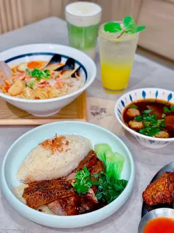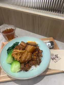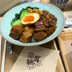 啟德自從開了零售館後,當中都有唔少新餐廳進駐,今日咁岩得閒,所以就黎試下東南亞x台式餐廳──麵堂。[烤雉雞扒流心蛋喇沙摻摻] -$76呢度的喇沙湯底係係用慢火燉煮,所以飲得出有「內涵」。味道方面都幾特別,椰味相對唔算太重,反而有陣冬蔭公酸辣的刺激感。烤雉雞扒一上枱見到四大塊厚切都有少少驚喜,雞皮有用蜜糖煎得香脆,雞肉雖然大大塊,但肉質都保持到嫩滑。摻摻配埋喇沙湯同埋流心蛋的確係絕佳的配搭。[紅燒肉滷肉飯拼牛肉麵] -$88呢度晚餐其中一個特色係會有兩款主食拼埋一齊,今次就試下紅燒肉滷肉飯拼牛肉麵。份量相對上都算多,紅燒肉滷肉飯當中紅燒肉有驚喜,食落去唔會覺得肥膩,肥瘦分明,肥的部份入口即溶,而瘦肉部份都入晒味。至於滷肉的醬汁相對較甜,唔算多肥肉,餸飯一流。另外牛肉麵相比下細碗啲,少食多滋味,湯底都夠濃郁,絕對唔馬虎,湯底帶少少中式滷水香料味,而麵底都算彈牙。[香草墨魚餅] – 套餐加$46香草墨魚餅應該係呢度的Signature之一,香草的味道反而近似香茅,近似平常食泰國菜時魚餅的餣法,不過今次放係墨魚餅更加好。另外就係魚餅食落去會比較「淋」,而墨魚餅就較為彈牙。加上呢度仲有墨魚粒,食落法有唔同層次。[椰青滑冰] – 套餐加$20麵堂有好多唔同的特色飲品,當中最抵飲一定係椰青滑冰,大大杯同埋充滿椰子味的沙冰,夏天飲真係爽入心脾![泰風味豬頸肉沙律菜]一上枱已經俾個份量嚇親,完全唔似係一款小食。豬頸肉個肉質比較諗,同埋保持到Juicy的狀態,應該用慢煮的做法先有呢個效果。沙律菜加上泰式酸醋夠晒開胃!整體而言,呢度食物質素好,份量又夠大,價錢亦算合理範圍,可以同時揀東南亞同台式的菜式比較少見,同時仲有唔少特色食品同飲品可以俾你嘗試下新野。之後如果睇Show或睇球賽都可以再次Encore!…查看更多