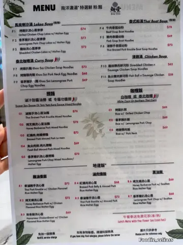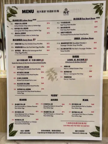 启德自从开了零售馆后,当中都有唔少新餐厅进驻,今日咁岩得闲,所以就黎试下东南亚x台式餐厅──面堂。[烤雉鸡扒流心蛋喇沙掺掺] -$76呢度的喇沙汤底系系用慢火炖煮,所以饮得出有「内涵」。味道方面都几特别,椰味相对唔算太重,反而有阵冬荫公酸辣的刺激感。烤雉鸡扒一上枱见到四大块厚切都有少少惊喜,鸡皮有用蜜糖煎得香脆,鸡肉虽然大大块,但肉质都保持到嫩滑。掺掺配埋喇沙汤同埋流心蛋的确系绝佳的配搭。[红烧肉卤肉饭拼牛肉面] -$88呢度晚餐其中一个特色系会有两款主食拼埋一齐,今次就试下红烧肉卤肉饭拼牛肉面。份量相对上都算多,红烧肉卤肉饭当中红烧肉有惊喜,食落去唔会觉得肥腻,肥瘦分明,肥的部份入口即溶,而瘦肉部份都入晒味。至于卤肉的酱汁相对较甜,唔算多肥肉,𩠌饭一流。另外牛肉面相比下细碗啲,少食多滋味,汤底都够浓郁,绝对唔马虎,汤底带少少中式卤水香料味,而面底都算弹牙。[香草墨鱼饼] – 套餐加$46香草墨鱼饼应该系呢度的Signature之一,香草的味道反而近似香茅,近似平常食泰国菜时鱼饼的餣法,不过今次放系墨鱼饼更加好。另外就系鱼饼食落去会比较「淋」,而墨鱼饼就较为弹牙。加上呢度仲有墨鱼粒,食落法有唔同层次。[椰青滑冰] – 套餐加$20面堂有好多唔同的特色饮品,当中最抵饮一定系椰青滑冰,大大杯同埋充满椰子味的沙冰,夏天饮真系爽入心脾![泰风味猪颈肉沙律菜]一上枱已经俾个份量吓亲,完全唔似系一款小食。猪颈肉个肉质比较谂,同埋保持到Juicy的状态,应该用慢煮的做法先有呢个效果。沙律菜加上泰式酸醋够晒开胃!整体而言,呢度食物质素好,份量又够大,价钱亦算合理范围,可以同时拣东南亚同台式的菜式比较少见,同时仲有唔少特色食品同饮品可以俾你尝试下新野。之后如果睇Show或睇球赛都可以再次Encore!…查看更多