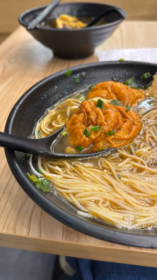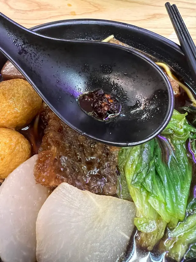 近期親自試食後,感受略帶複雜,值得與大家分享。首先談談豬頸肉,份量明顯大塊且啖啖肉,肉質豐富,能感受到鮮美的肉香,確實是店內的一大亮點。不過,部分塊狀口感有點像「鞋」,即偏硬和稍韌,影響了整體的口感體驗。期待或許可以在切割方式或烹調時間上稍作改良,使豬頸肉更加柔嫩可口。雞翼和雞翼尖的味道則較為傳統,滷水味不算重或過甜,屬於較為清淡的口味,沒有特別令人驚喜但也不失水準。這部分或許可視為老少咸宜的配搭。至於蘿蔔,味道偏淡清爽,不甜,沒有完全煮得軟爛以致無法食用,反而保留帶點嚼感的口感,個人感覺合適,不會過於搶戲,為整碗車仔麵增加一定的層次感。總體而言,麵尊香港仔店在份量和用料上不吝惜,適合喜歡大塊肉質和港式風味的食客。然而口感方面小細節仍有提升空間,例如豬頸肉的韌度問題。雞翼和蘿蔔部分則偏審慎路線,適合喜歡較柔和口味的人。此店值得一試,但建議初訪者可先從豬頸肉入手,作為品嘗重點。…查看更多