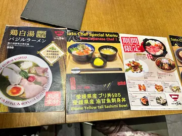 餐厅提供的拉面多样化,采用日本各地的材料,如长崎拉面,熊本蒜油猪肋拉面,博多猪肋拉面等。根据时令食材,不时提供期间限定的拉面。