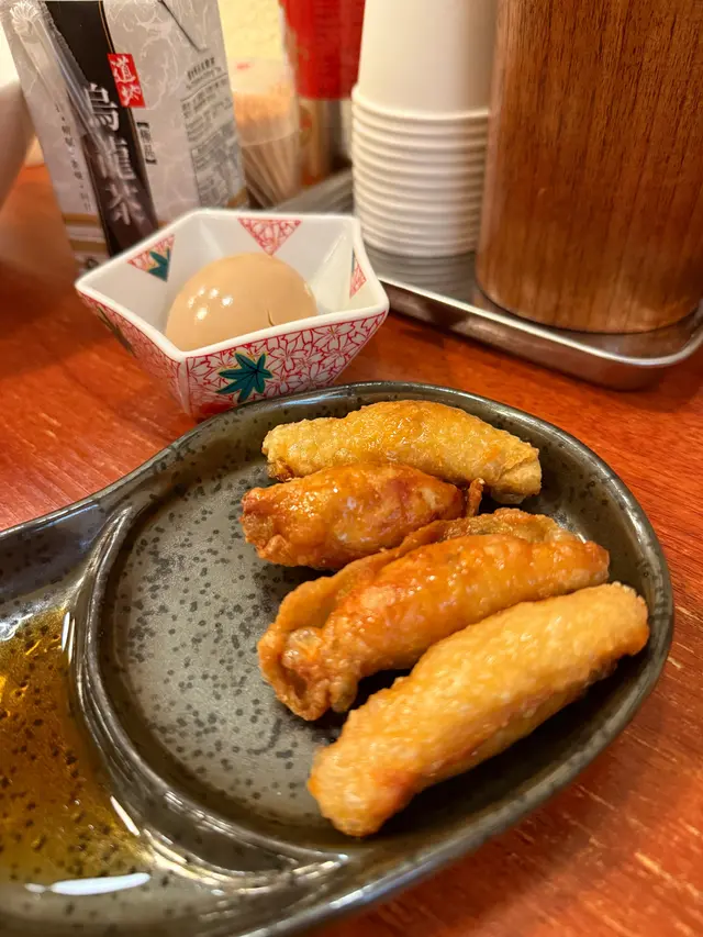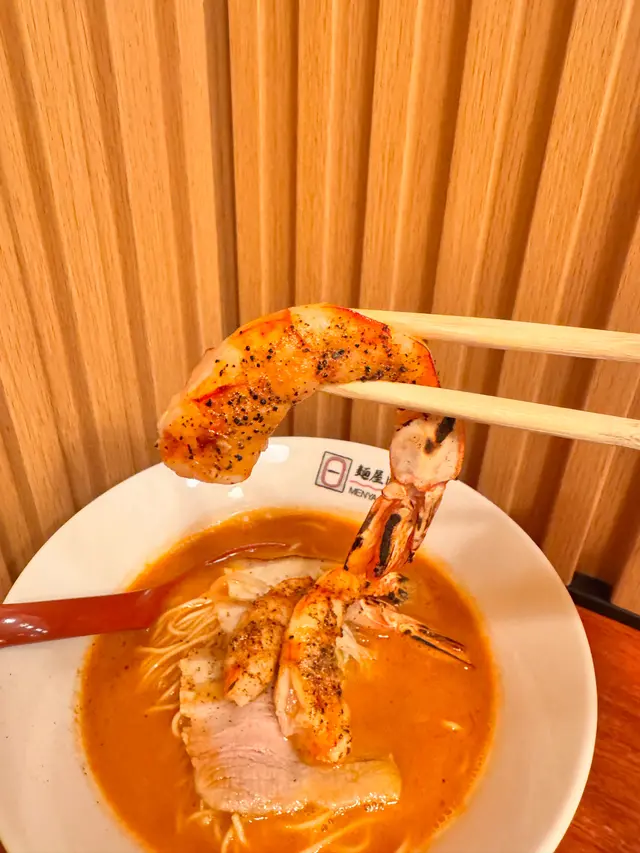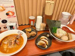 這間人氣拉麵店位於銅鑼灣渣甸坊,鄰近希慎廣場,主打四款拉麵,真材實料的湯頭採用豬大骨及丸雞,每日以慢火長時間新鮮熬製。店內環境寬敞舒適,裝潢以時尚的日系木為主,座位採用傳統的日式拉麵格局,適合一人或多人聚餐。赤蝦拉麵 - $128期間限定拉麵,湯頭結合了蝦的鮮味及豬骨雞湯的醇厚,帶有濃郁的海鮮香氣。三隻去殼赤蝦晶瑩剔透,柔嫩又不失彈性,黑椒襯托出其鮮美,還有肥瘦相間的火炙腩肉叉燒,採用新鮮五花腩加上自家醬油,油而不膩。日式手搓面以日本北海道麵粉製作,人手搓揉更具口感。淡麗醬油拉麵(特盛) - $116採用多種正宗日本醬油等材料為基底,熟成數天更能帶出其鮮味,湯頭清甜帶有醬油的鮮味。同樣有火炙腩肉叉燒,大大塊清脆的紫菜,原隻溏心蛋的蛋白好滑嫩,流出濃濃的蛋黃。煎餃子 - $28底部酥脆,餃子皮薄且口感香韌軟糯,內餡有免治豬肉及蔬菜,平衡豐富的肉汁,味道濃郁多汁。無糖汽水 - $14烏龍茶 - $10玻璃瓶裝的汽水能更好地保留汽水的氣泡和原味,有更持久的爽口感。…查看更多