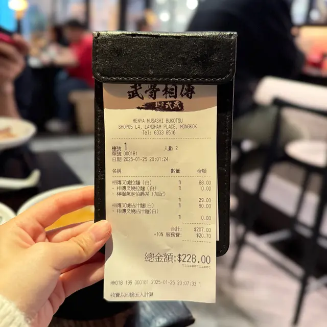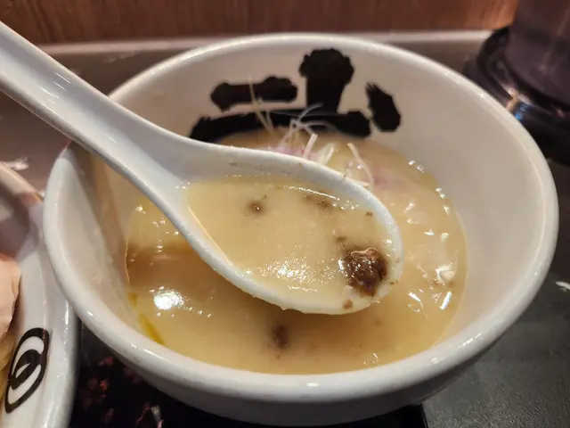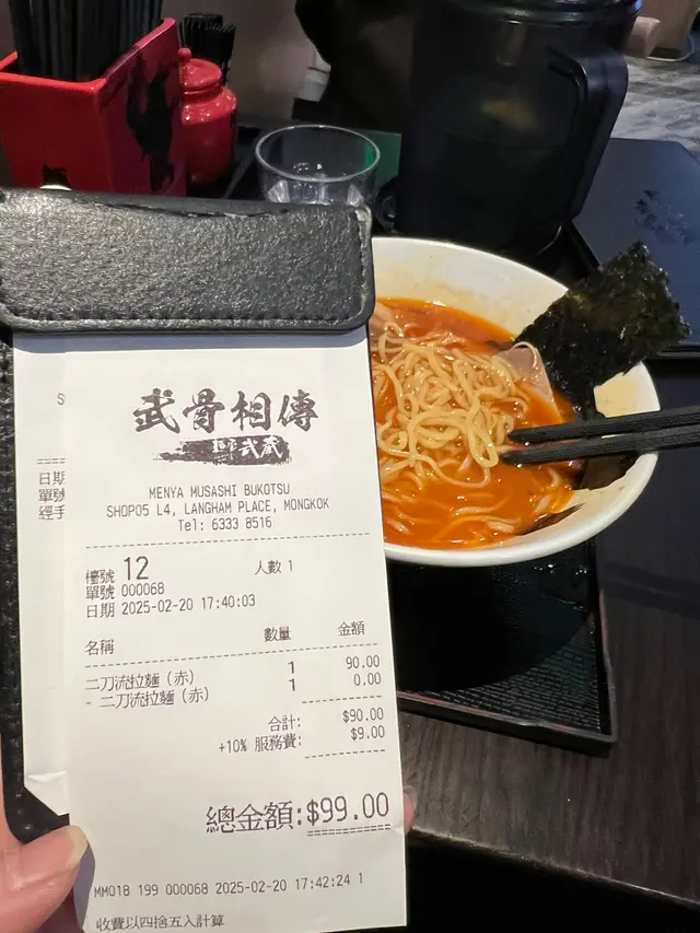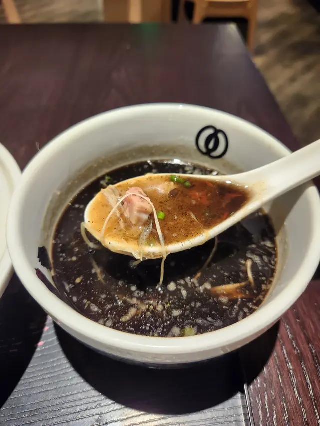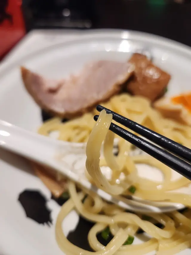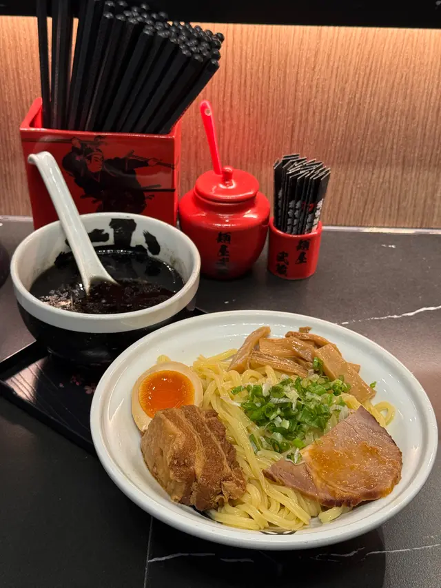 朗豪坊店位於商場4樓(Shop L4-05),環境熱鬧,帶有濃濃的日式拉麵店氛圍,開放式廚房讓人能一窺師傅製作拉麵的熟練身手。木質裝潢與柔和燈光營造舒適感,適合快速用餐或與朋友小聚。服務員態度親切,點餐時會詢問麵條硬度與湯頭濃度偏好,並提醒沾麵的食用方式,十分貼心。黑蒜沾麵是麵屋武藏的招牌之一,特色在於濃郁的黑蒜豚骨湯底,搭配粗麵與豐富配料。沾麵的湯底由豚骨長時間熬煮,加入黑蒜油與特製醬料,呈現深邃的黑色澤,香氣濃烈撲鼻。入口時,黑蒜的焦香與豚骨的厚實完美融合,帶有微甜與鹹香,濃度高卻不死鹹,令人回味。湯底中加入少許蔥花與蒜末,提升層次感。麵條選用粗麵,煮得偏硬(可依喜好調整),Q彈有嚼勁,沾上濃稠湯底後風味更佳。建議每次沾取約三分之一的湯汁,讓麵條充分吸附黑蒜的香氣,口感最佳。配料包括厚切叉燒、溏心蛋、筍乾與海苔。叉燒厚實軟嫩,肥瘦均衡,入口帶有淡淡炭烤香;溏心蛋熟度完美,蛋黃呈現濃稠半熟狀態,與黑蒜湯底相得益彰;筍乾爽脆,增添清新口感。唯一小缺點是湯底偏濃,若連續食用可能稍感油膩,建議搭配冰水或桌上的柚子醋來解膩。湯飯以豚骨湯底為基底,加入少量黑蒜油與醬汁,米飯吸附湯汁後粒粒分明,入口帶有淡淡蒜香與豚骨的濃郁風味。飯量適中,約半碗白飯,搭配細碎的叉燒丁與蔥花,簡單卻美味。湯飯的湯汁較清爽,與濃厚的沾麵形成對比,讓整體用餐體驗更平衡。惟湯飯溫度稍低,若能上桌時更熱一些,風味會更突出。麵屋武藏的黑蒜沾麵充分展現了品牌對濃厚湯底的掌控力。黑蒜油的加入不僅增添獨特焦香,還讓湯底更具深度,與傳統豚骨沾麵相比更具特色。沾麵的食用方式也為用餐增添趣味,顧客可根據喜好控制湯汁濃度,增添互動感。搭配的湯飯則體現了品牌對細節的用心,將主餐的風味延伸至小菜,讓整套餐點和諧統一。此外,麵屋武藏以「武士精神」為理念,注重創新,常推出限定菜單,讓饕客每次造訪都有新驚喜。查看更多