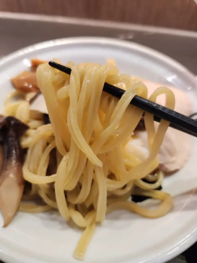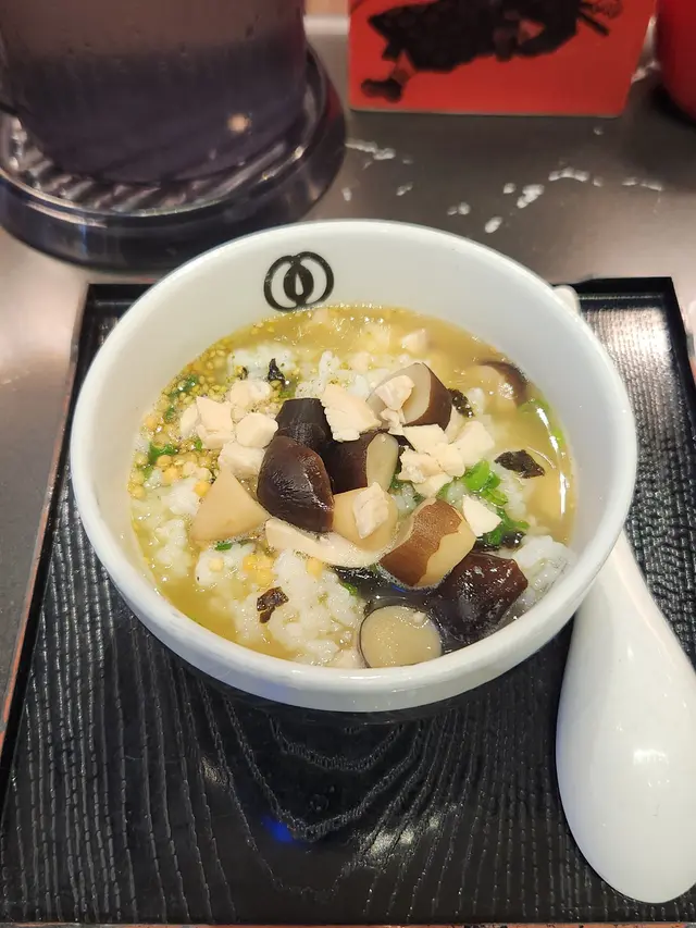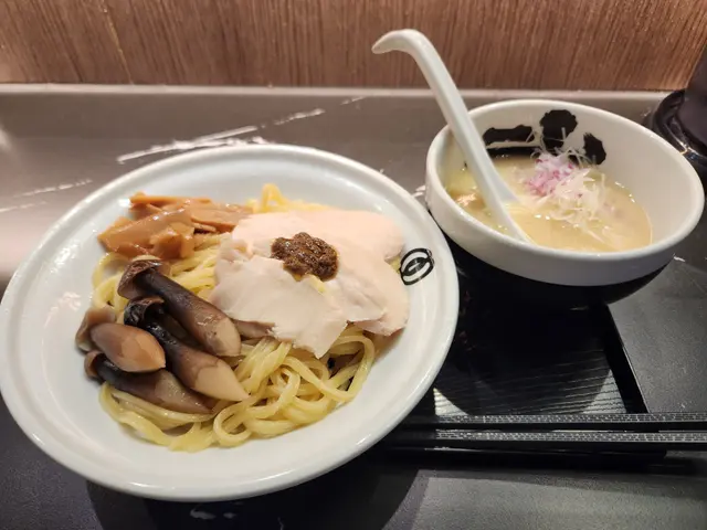 麺屋武蔵武骨相傳位於旺角朗豪坊4樓(Shop L4-05),店內環境充滿日式拉麵店的氛圍,開放式廚房讓客人能欣賞師傅製作拉麵的過程。木質裝潢搭配柔和燈光,營造出舒適的用餐環境,適合快速用餐或與朋友小聚。 招牌黑蒜沾麵湯底濃郁,黑蒜油與豚骨湯完美融合,帶有微甜與鹹香,搭配粗麵十分有嚼勁。配料如厚切叉燒、溏心蛋和筍乾也相當出色,叉燒軟嫩,溏心蛋蛋黃濃稠,整體風味層次豐富。此外,牛肝菌雞白湯泡飯鮮味十足,湯底濃郁但不膩,黑松菇份量足,搭配米飯口感豐富。 服務方面,店員會詢問客人對麵條硬度和湯頭濃度的偏好,並細心提醒沾麵的食用方式,整體體驗相當不錯。查看更多