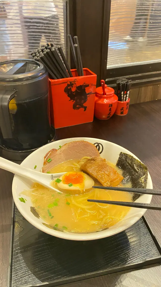 經過我見過好多次麵屋武藏都冇入過去食,今次下午茶時段大約五點鐘左右就去試咗一次。湯底嚟講唔錯有驚喜, 不過以拉麵質素嚟講就差少少,感覺比較低級啲嘅拉麵底。服務員態度非常好。門口本來有一pair情侶猶豫緊要唔要坐吧檯,咁只係稍作等咗十秒鐘左右我就入座。服務員禮貌好好。食物湯底 ⭐️⭐️⭐️⭐️似喺日本嘅濃豬骨湯底,有啲級數面底⭐️⭐️感覺低級少少係特製似係即食麵叉燒⭐️⭐️份量Ok,不過食落個味似香港叉燒溏心蛋⭐️⭐️⭐️中規中矩環境⭐️⭐️⭐️⭐️裝修日本風,坐得算不錯環境清幽服務⭐️⭐️⭐️⭐️⭐️出餐快,服務員不時打掃衛生食物⭐️⭐️⭐️環境⭐️⭐️⭐️⭐️服務⭐️⭐️⭐️⭐️⭐️查看更多