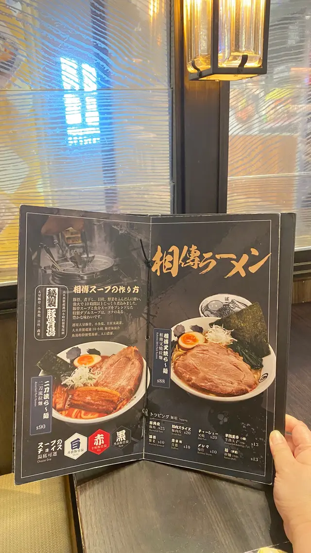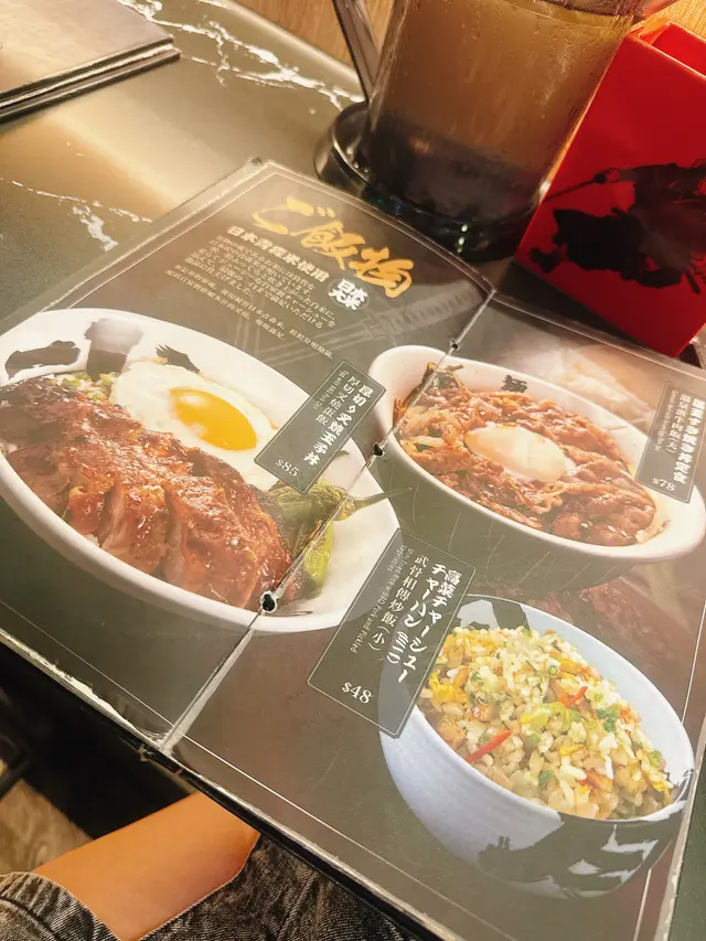 《麵屋武蔵 武骨相傳》 相傳叉燒🍖拉麵🍜 + 牛肝菌🍄‍🟫雞🐔白湯泡飯🍚📍旺角亞皆老街8號朗豪坊4A樓5號舖《相傳叉燒🍖拉麵🍜》香味 (4/5)濃濃嘅豚骨🍖味撲鼻而來,第一印象相當唔錯。湯 (3/5)呢個湯主要係豚骨湯同醬油嘅味道,一入口偏甜少少,之後就係豚骨味,同醬油嘅鹹鮮味。我認為呢款湯算香港大眾化口味,我心目中何謂香港大眾化口味?只要睇睇香港最多嘅餐廳係咩類型就知,就係茶餐廳。而茶餐廳絕大部分受歡迎嘅食物都離不開「濃,鹹,甜,香,油」五個字,最代表性嘅食物莫過於沙嗲牛肉麵,干炒牛河之類。而呢款湯,正正就係「濃,鹹,甜,香,油」五個字全數中晒。好唔好味?係幾好嘅,不過因為我本身鍾意淡口味,呢個咁powerful嘅湯有d頂唔順,食到後段負擔太大,所以我清唔晒,亦唔想清晒。麵條 (3/5)中細直麵,偏黃,偏高加水。爽滑有彈性,合格有餘,幾好食。配料 (4/5)重點要講講塊叉燒,非常之好食。嫩,軟,香,肉味夠,走肥,且大塊,偏厚切,所以呢款叉燒比到我嘅滿足感係十分之大。唔知係咪又係因為大眾化口味關係,塊叉燒同港式叉燒味道質感都係近似,可能會有人覺得佢唔夠日式。蔬菜有,白蔥,菠菜,同紫菜。以上講過呢款湯偏濃偏膩,呢三款蔬菜都未能發揮足夠解膩作用,不過如果齋講質量,都係合格線以上,特別係菠菜處理得幾好,夠爽脆夠清甜。溏心蛋方面,偏濃偏鹹,我食左半隻之後立刻飲水。生熟度係好不過壞在偏鹹。《牛肝菌🍄‍🟫雞🐔白湯泡飯🍚》唔知從幾時開始,我唔再覺得食麵一定要跟餃子,反而越來越鍾意跟碗飯,而拉麵店嘅飯偶然比到我更大滿足感,好似《麵山口商店》嘅《貓飯》就係好例子。其實今次我一路猶豫緊,到底食牛肝菌🍄‍🟫雞🐔白湯拉麵好,定以上嗰碗拉麵好。睇睇menu,同樣係牛肝菌🍄‍🟫雞🐔白湯有泡飯(雑炊)叫,咁就天作之合啦,試足兩款口味之餘又可以食一麵一飯,大滿足!呢款泡飯我會比5/5分,因為黑松菇同雞湯嘅味既濃郁又唔會過鹹,鮮味足,另外都算好足料,黑松菇份量足,食得過癮。飯嘅口感好好,除左白米之外仲有另一款米,口感似糯米,加上有頗多芝麻粒,所以口感嘅層次相當高。食到中後,望一望d湯嘅色水,見d湯呈綠色,恍然大悟,原來有加埋菠菜去煲湯,唔怪得一路食一路覺得有種清新嘅味道,原來菠菜一直都在。最後,算係完食,剩返少少拉麵嘅湯。整體 - 值得推薦 👍👍👍👍只要你鍾意大眾化口味,呢碗叉燒拉麵應該會足夠滿足到你。而個泡飯我認為比拉麵層次更高更值得食。如果食量細嘅人,二揀一我建議揀個飯。查看更多