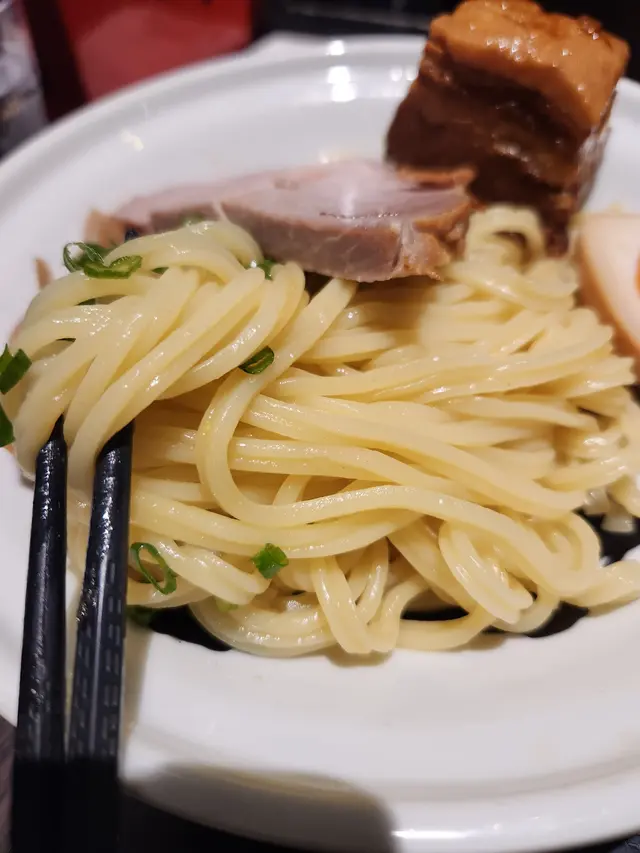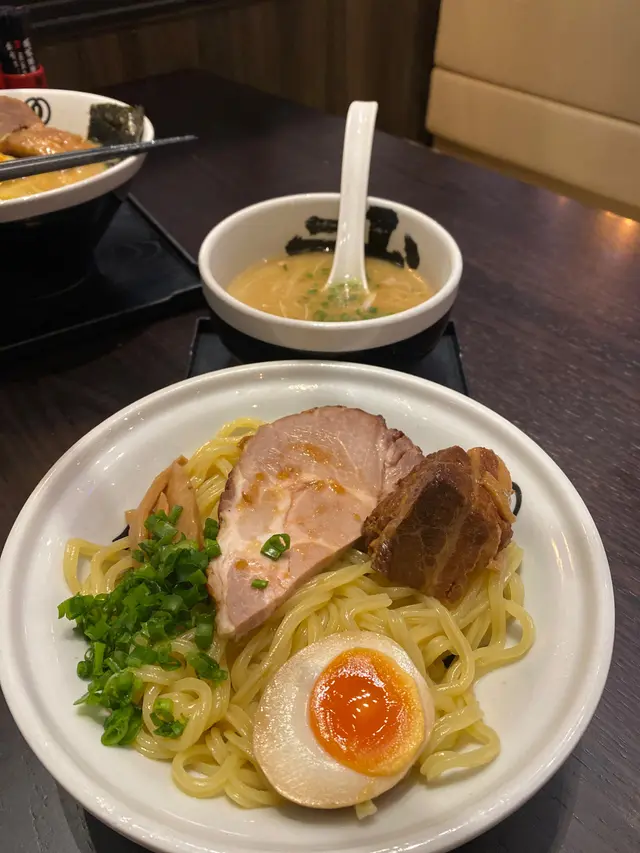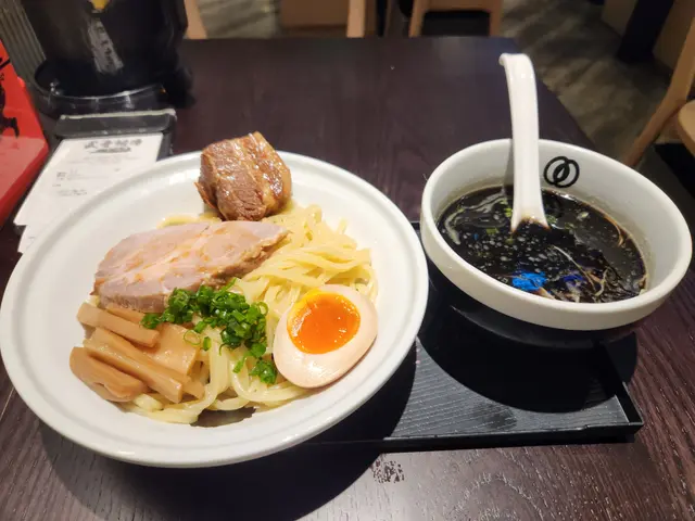 麵屋武蔵呢四個字,開初比到我嘅感覺係,d拉麵一定係大眾口味,唔會特別好。點知,我錯了,我點嘅呢碗沾麵非常之有驚喜!二刀流🔪沾汁麵🍜(黑蒜🧄豚骨湯)香味 (4/5) - 試問有黑蒜油存在嘅湯,又點會唔香呢?一如所料,香味非常充足!湯頭 (5/5) - 真心覺得呢個黑蒜🧄豚骨湯真係交足功課!香濃不在話下,亦符合我個人口味,唔會太鹹!點餐嘅時候我仲擔心會過鹹,點知鹹度以沾湯來講係洽到好處!油量係高嘅,不過我認為沾湯油量高係好正常,咁先可以保持沾湯嘅溫度,而且香!麵條 (5/5) - 直接滿分啦!點解,因為麵條係响香港非常少見嘅坑紋麵,有助掛湯,而且口感亦同平時會遇到嘅圓麵或方形麵有所不同,更有層次感!麵香正常,硬度係偏軟熟,但不失咬口。配料 (4.5/5) - 稱得為二刀流,當然係兩款叉燒啦!第一款,豬肩肉。有半塊,味道甘香,算係嫩滑,相當好食!如果有一整塊就更好 😊第二款,豬腩肉。咁,當然係肥啦,但還可以。口感方面,稍稍柴左dd,還可接受。滷得好入味,又不至於過鹹!溏心蛋有半隻,算水準以上!沾湯入面,仲有少少白蔥同青蔥,為整體添上少少清新感覺。整體 - 值得推薦 👍👍👍👍👍查看更多