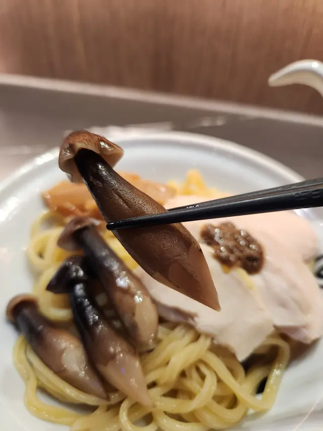 牛肝菌🍄‍🟫雞🐔白湯沾汁麵🍜香味 (4/5) - 個沾汁一聞落去,雖然唔係極之明顯,但細意品嚐吓個香味,牛肝菌🍄‍🟫同雞🐔味同時存在。湯頭 (4/5) - 質感都算濃稠,雞味唔係太濃但還可以,鹹味以沾汁來講算剛剛好。沾汁入面加埋白蔥,令成事清新左,完成度更高。麵條 (5/5) - 一如既往,沾麵係用左坑紋麵,非常罕有,令成個用餐體驗更有立體感,配沾麵係絕配。配料 (4.5/5) - 首先,主角我認為係牛肝菌,真係非常之咁好味。菇味好出,鮮甜,口感爽,可以話係我食過嘅拉麵或沾麵中最傑出嘅配料!雞叉燒方面,一如所料,用嘅係雞胸,唔算太驚豔,但亦算過得去。因為雞叉燒都算係主角,所以少少扣分。荀乾方面,正正常常,甜味荀味都夠,幾好食。食到尾,加湯,將少量嘅麵,配料放埋落去個稀釋左嘅湯度,體驗完整!所以一路enjoy住,一路食,湯都清埋!整體 - 值得推薦 👍👍👍👍👍查看更多