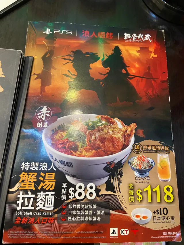 經過見到有新野。特製浪人蟹湯拉麵$88加流心蛋$10湯底是比較鹹,但蟹味係濃郁。拉麵及配料份量比較少,只有軟殼蟹同一點點菜。唯一好吃的是軟殼蟹,夠脆及炸粉醬唔太厚,好味拉麵冇口感,唔彈牙,普通。查看更多
