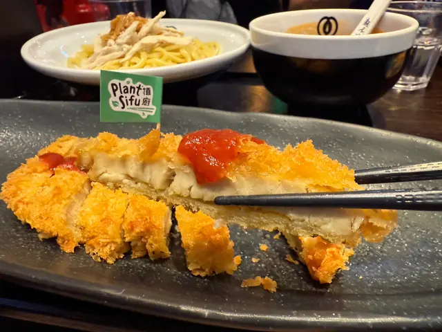 植物肉新搞作植廚植物肉做亞洲菜是非常夾!上次跟上海姥姥合作,今次是日式拉麵。阿仔打完波一齊去醫肚,佢食肉,我食素,同枱食飯各自修行。🥗涼拌胡麻山葵素雞沙律 $38好好好味!!個山葵不太嗆鼻,嗆的程度剛剛好!跟胡麻醬非常夾,可以屋企試試。🥗素雞番茄沾汁麵 配吉列素豬扒(含蛋)$88我喜歡沾麵,喜歡醬汁濃稠的掛在麵條上非常滿足。今次植廚做的也是沾麵,醬汁掛麵!不過可能因為係蕃茄湯底關係,有少少似羅宋湯😂吉列素豬扒囗感chewy, 炸粉不會太厚,不油膩,good job。👍🏻查看更多