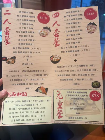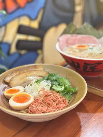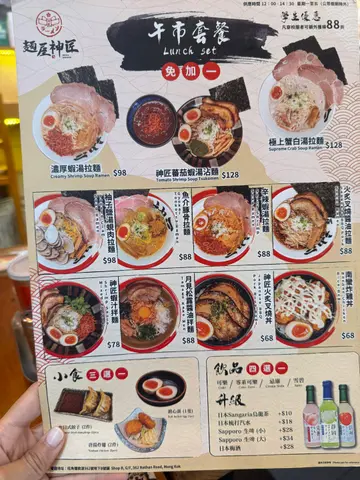 今日来了旺角这间充满日系及动漫色彩既面屋神匠用餐!餐厅满满都是日式色彩缤纷既图案同设计!夏祭气氛好浓厚!岩晒打卡影相,非常有特色!今日点了一份二人套餐!仲升级了虾沙沾面跟蟹白汤拉面!这间餐厅的虾汤、蟹汤相当出名!一定要试!二人套餐仲可优惠加配汽水!爽!日式南蛮炸鸡!鸡件啖啖肉,香脆惹味!配埋酱汁来食超惹味!充满日本风味!仲有一只溏心蛋!超满足!整上蟹白汤拉面,超丰富及足料既一碗拉面!汤底鲜甜奶白色,劲鲜甜!不论品尝汤底或配上拉面来食,蟹味十足!仲有满满的蟹肉、蟹棒、蟹丝!劲足料,蟹味鲜甜无比,劲足料超正!叉烧大大片,相当好咬口同惹味!成碗拉面超有水准!又足料!必试!神匠蕃茄虾汤沾面!一碗沾面,这款面条较为粗身,有咬口,口感烟韧,而且非常挂汤汁!一流!仲配有猪腩肉片,肥瘦分明,猪肉味香浓,入口超香超惹味!最欣赏是蕃茄虾汤,满满的樱花虾,非常鲜甜!而且蕃茄汤超足料!蕃茄又香又甜!仲会食到满满的蕃茄肉!用来做沾面的汤汁超惹味!两款面食都相当美味!各有千秋!正!…查看更多