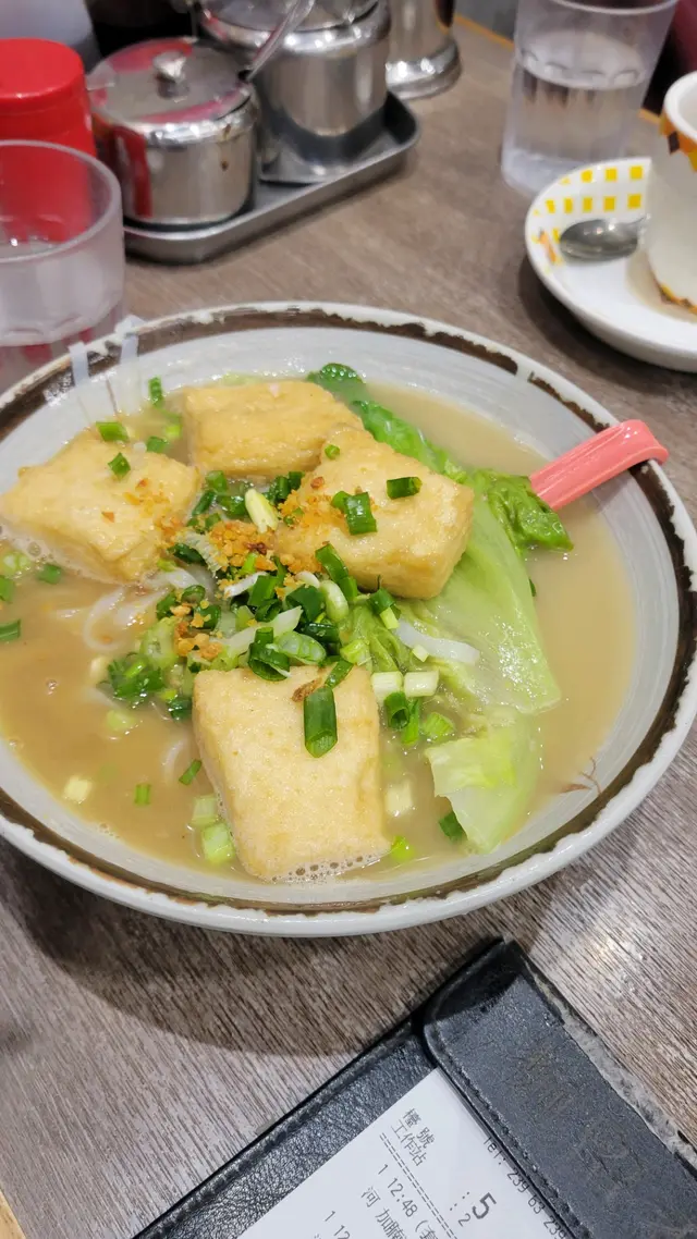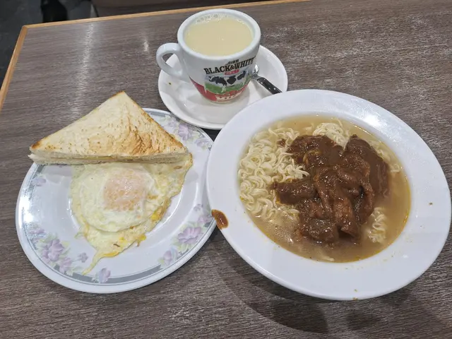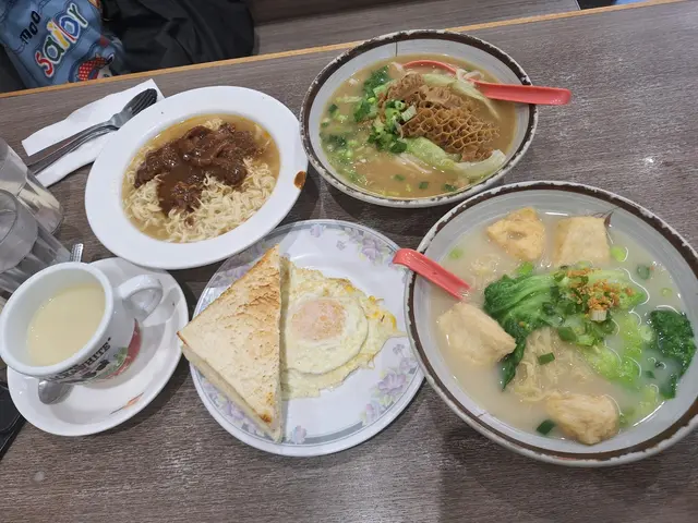 沙嗲牛肉麵,煎雙蛋拼多士,魚蛋河