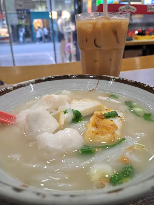 呢間餐廳多數做街坊生意開咗大大話話幾十年好多人都會特登黎買魚片頭咁你就知佢既魚片頭真係唔係講笑😎所以我都要黎試吓!佢既炸魚片頭係三角形,真係好彈牙,好滑!咬落去既口感有啲似魚腐但佢會比較彈牙感覺好特別另外呢碗係牛腩麵牛腩嘅份量係超級多!幼麵好爽口不過湯底略略有點兒咸牛腩肥瘦適中唔會好柴仲配有兩片生菜添好味!😋通常我會加埋辣椒油咁樣就會更加好食,唔會太滯除咗麵之外,佢仲有其他晚餐晚餐只做到晚上9點粉麵就去到晚上11點.總括嚟講:粉麵都做得好出色,麵好爽口唔會煮得過時,配料揀嘅兩款暫時都好滿意,加埋大大杯凍檸茶,正呀🤤查看更多
