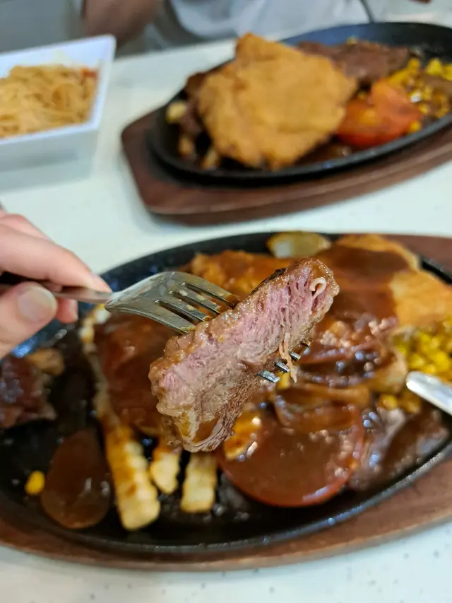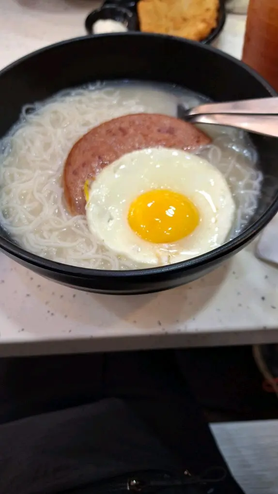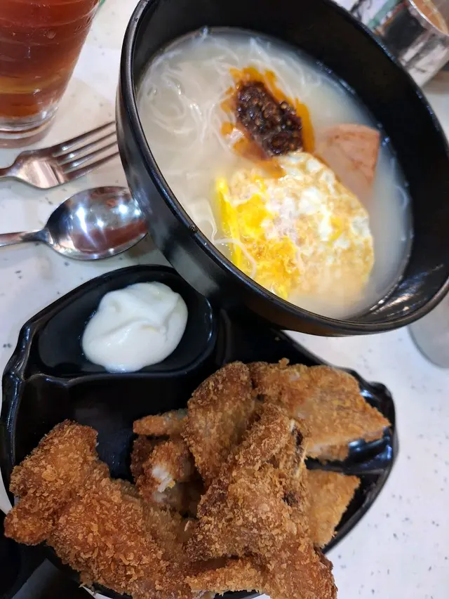 呢間餐廳食過兩次,一次食魚柳,一次食豬扒,兩次都覺得好好食,服務態度又好👍。趁住今日放假試埋佢嘅雞扒,上次見到人食好似唔錯。此外,天水圍新北江的鋪頭又好啱我行。廢話少講,講返個早餐先,🥩雞扒大大件斬件上,即做出嚟仲係熱辣辣,1️⃣無太油膩,2️⃣又無過咸 ,份量正常一個男人應該好夠食,米粉唔會煮到林哂,剛剛好好有口感,至於餐肉同太陽蛋就正常無咩特別。總括嚟講,41蚊呢個價錢食呢個質素嘅食物性價比算高✔️。不過餐廳始終係一間小店,食客眾多,坐得比較迫,好多時都要搭枱。…查看更多