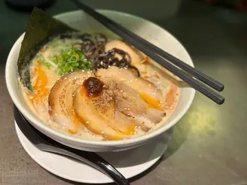 其实每次经过呢间拉面舖都想入去试,但每次都因为赶时间搅到未有机会,上星期做完针灸之后终于有时间帮衬😊石门站一出就会见到,所以正常好多人都会经过,外面望其实舖吾大,夜晚去食通常都要排队,好彩我今次针灸完吾太晏,去到排左几分钟就入得,喺完全冇谂过食乜,冇上openrice睇评语介绍,胆粗粗叫左个特盛海老豚骨汤拉面同埋饺子,因为第一次食呢间,所以面质拣左适中,汤底拣左中味,心谂应该都安全呱😅拉面黎到望落感觉好油,但卖相几好,试左啖汤,个汤好浓,好重猪骨味,仲有啲鲜味,好足料嘅汤底,饮落反而吾觉油,好香好好饮🤤🤤面系幼面,好吸汤,但又吾会太淋,啱啱好😋😋😋豚肉叉烧,脂肪比例啱啱好,每块吾太厚,又吾会薄到大风啲都吹走𠮶只,入口即溶,正😍😍😍面里面仲有2粒好似云吞嘅野,不过放入口有阵酸味,其实我有谂过会吾会系变坏左😂仲有只流心旦,因为我吾食所以吾知好吾好味,配菜仲有啲木耳,紫菜𠮶啲,整体黎讲碗面系好好味,如果冇左𠮶2粒野会仲好🤣🤣🤣小食叫左饺子,煎饺子好香口,但又吾会㶶左,咬落去皮好薄,里面嚿肉多汁,就咁食已经好正😋😋😋我食完个面同饺子,但支茶仲未到,比我感觉如果我吾问,其实佢哋会吾会吾比我🤨里面枱又吾多,你话好忙又吾系,细心留意其实都会见到个客冇野饮,又或者落单后即时比支茶吾系正常做法咩🧐系唯独呢方面可能要改善下,其它都感觉良好,野食又好☺️…Read More