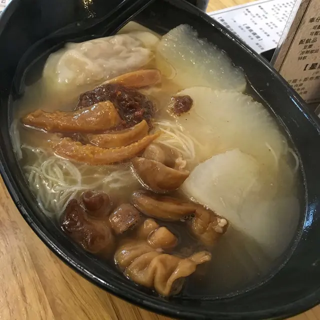 ,我就揀左車仔麵,有米粉、山根、生菜、蟹籽丸。湯底清清地唔算好濃,另加左菜譜之後成件事即刻好味好多