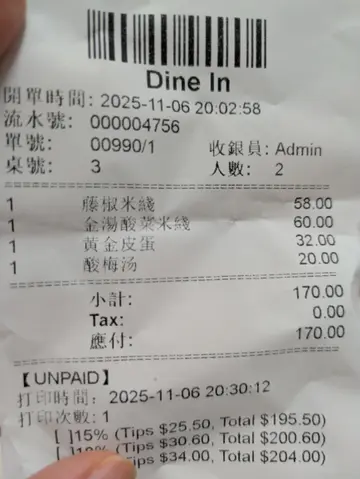 今日同同事食lunch喺土瓜湾 喺网上面都睇到 呢一间重庆口味慨米线 口碑极高呀🤩梗系要嚟朝圣😋老板娘好健谈㗎😍仲话佢地采用咗香港独家技术:重庆小面以糊辣壳炒辣椒干,好好味㗎又好香㖞,仲有佢地嘅特式罐罐汤底米线、自设厂房~特制烟靭米线、新鲜食材制作架半罐汤底 半罐料,丰富营养份量十足呀👍👍泡椒鱿鱼面🌶哗😍好香泡椒嘅麻辣味道,𠮶啲鱿鱼只只都好大牙好烟韧好好食㗎㖞😍😍老板娘话一定要捞起个面捞到个面同d汤容合晒先至最好味㗎👍👍麻香味又唔辣😋但系就好惹味👍唔停得口㗎😁配菜仲有木耳同埋西芹清清爽又辣辣地好回味😋西红柿罐罐米线🍅估佢唔到呀😃热辣辣出晒烟一个罐罐咁样上好靓呀😁里面有猪润同有猪肉仲有鹌鹑蛋同埋好多配菜,最特别就系个米线好幼细好软淋淋好好味👍👍个汤呢好饮到不得了😋简直成个罐罐啲汤差几乎饮晒😁个汤好甜👍 猪润同埋猪肉都好新鲜仲有新鲜嘅蕃茄喺里面真系足料又好食😋仲好抵食添 ❤️❤️酸梅汤饮晒之后先至发现里面系藏宝㗎🤩有陈皮同埋话梅真系好足料呀👍👍面面香(香港)土瓜湾马头角道53号地舖…查看更多