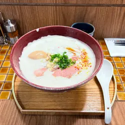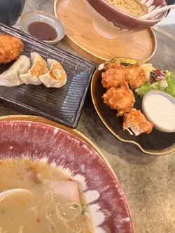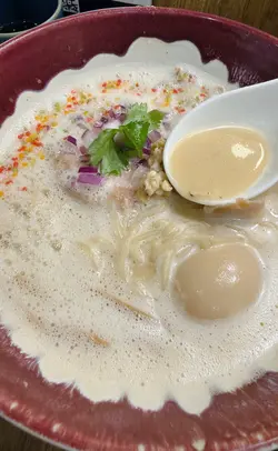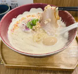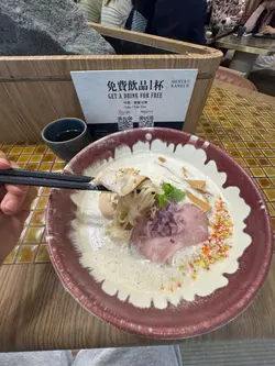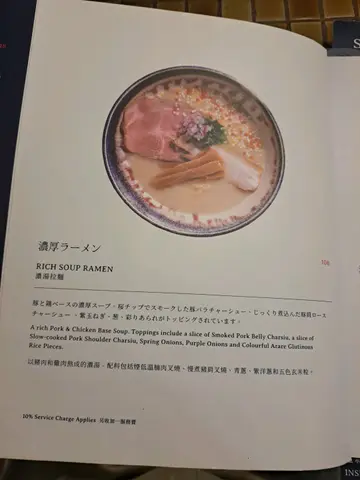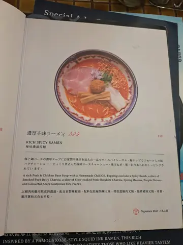Visited this ramen resto in Elements with my friend after watching the Mughals Exhibition at the Palace Museum. .I ordered the Black Squid Ink & Pork Bone Ramen. Its dark appearance might seem a little intimidating, yet the broth was quite savoury and rich, with the squid ink blending smoothly into the tonkotsu soup base. The garlic slices on top added extra aroma. The pork charsiu was thinly sliced and I thought the portion was a bit small. My sakura wood smoked Japanese egg had a nice runny yolk. My friend ordered the Rich Sea Bream Fish Ramen. It came with torched sea bream, braised pork belly charsiu, slow-cooked pork shoulder charsiu, sakura wood smoked Japanese eggs, purple onions, mitsuba Japanese parsley, bamboo shoots and colourful arare glutinous rice pieces. Her egg seemed slightly overcooked to me. .The ramen resto itself is not very big. It offers rice bowl too. The price of the food is on the higher side. The waitress was nice and offered me an apron as she reminded me that the squid ink broth might stain my clothes. .If one uploads four-star review on OpenRice or Google Maps, they can enjoy a free drink. …查看更多