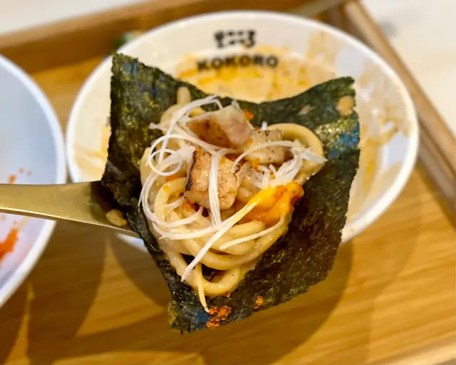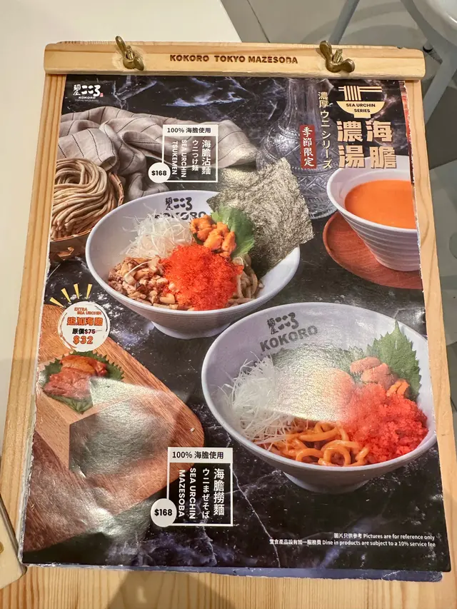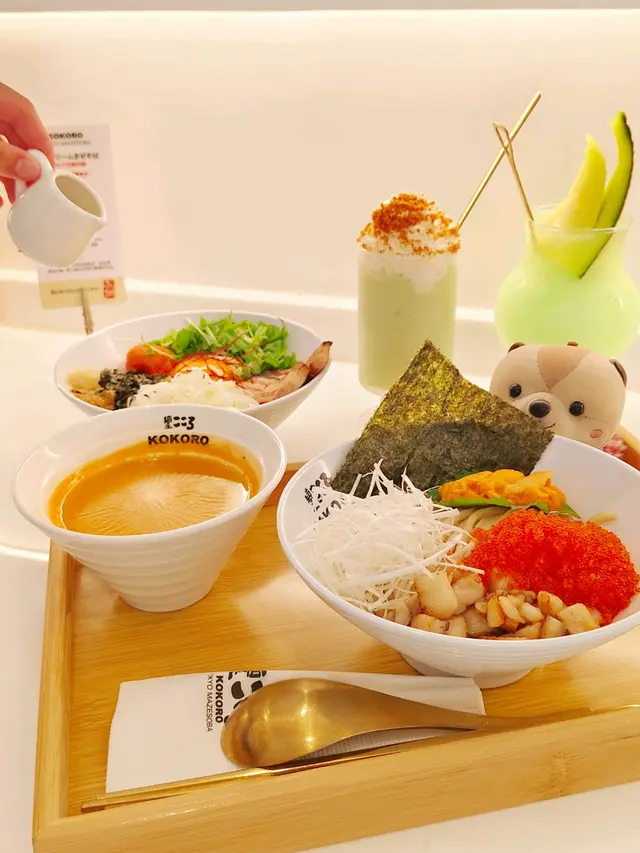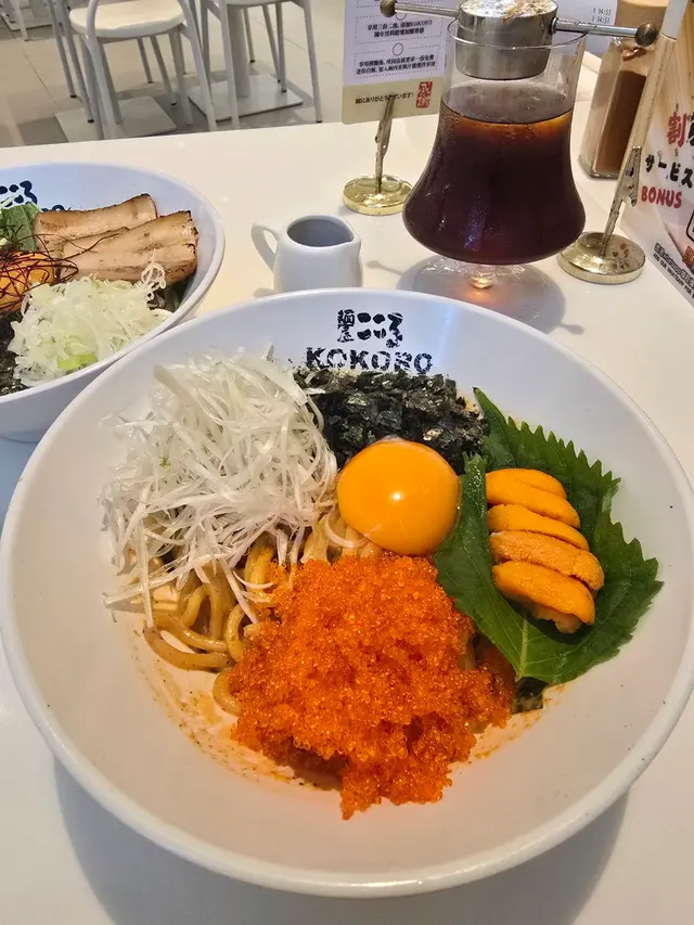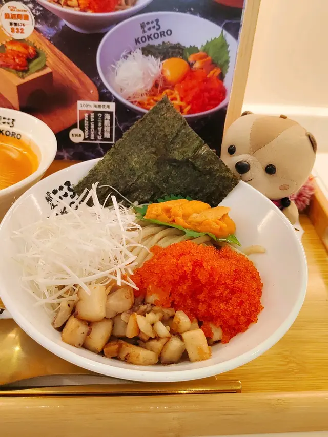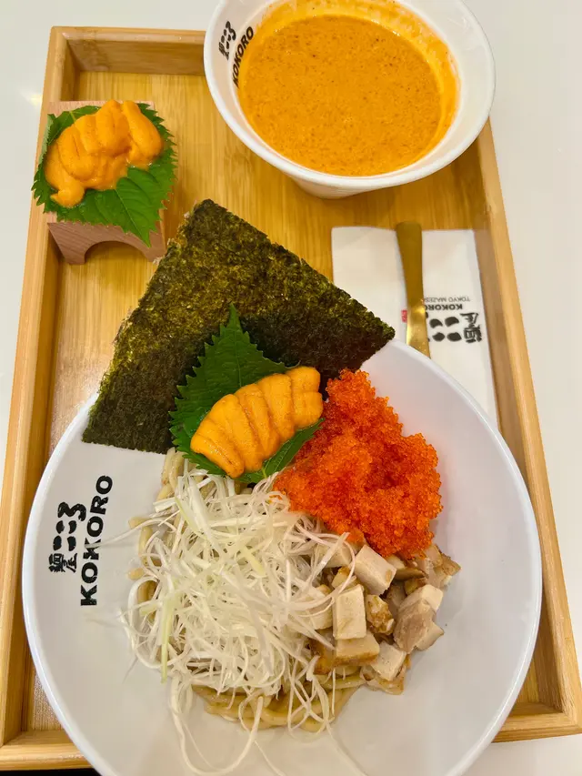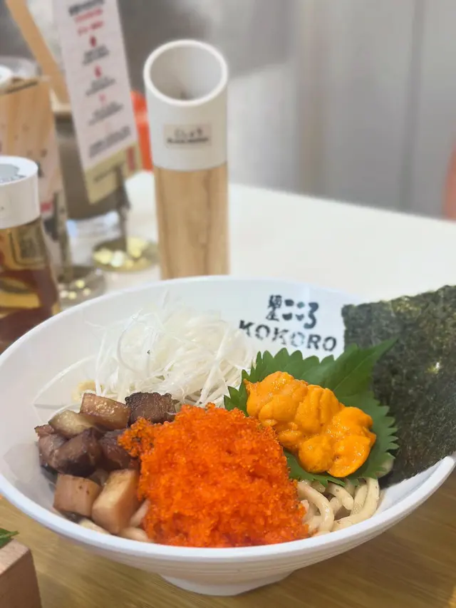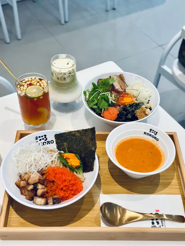 今日去咗一個新商場位置都唔錯、鄰近西鐵附近又有輕鐵出市區行街購物夠哂方便、位於元朗YOHO MIX附近又有好多店舖、行到累累地想搵D特式嘢食周邊都有好多望見這一間《KOKORO》日式店舖🤔、整間店面環境係以奶白為主色、柔和色調坐著感覺舒適😚、係到食嘢我覺得都唔錯☺️!海膽沾麵 $168呢一款係店家期間季節限定🤔、濃郁湯底配海膽沾麵、滿滿蟹籽夠哂吸引🤤同肉粒、食到入口多重口感卜卜脆😙、加埋濃濃海膽鮮味每一啖別一般的味道😋、想豐富又可以追加海膽只係$32!明太子忌廉麵 $99呢一款明太子忌廉麵配料一樣咁豐富😯、整碗五颜六色係店家自家製撈麵、配料:豬腩、明太子、生蛋黃、蒽花、紫菜碎、水菜、唐辛子絲、生蒜及魚粉配埋陳年雪梨醋、店員講解有幾種不同食法口感味道、每一種可以食到特別味道、尤其是佢嘅忌廉麵麵、入口軟滑每一條沾滿忌廉、、同時再加添雪梨醋夠哂醒胃、係這個炎熱冇胃口天氣😞、食番碗我覺得都幾好☺️!牛油果奶昔 $48呢一杯牛油果奶昔好有營養又健康🤔、賣相睇得又飲整杯淡綠色、上面加添忌廉花令到更加香口綿滑又好飲!溫室蜜瓜沙冰 $68呢一杯蜜瓜沙冰係這個夏天飲番杯、整杯賣相淺綠色綠悠悠好有夏日清爽感😚、飲到入口消暑又解渴清凉、配埋温室蜜瓜每一啖入口甜入心☺️!…查看更多