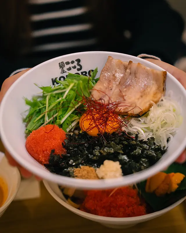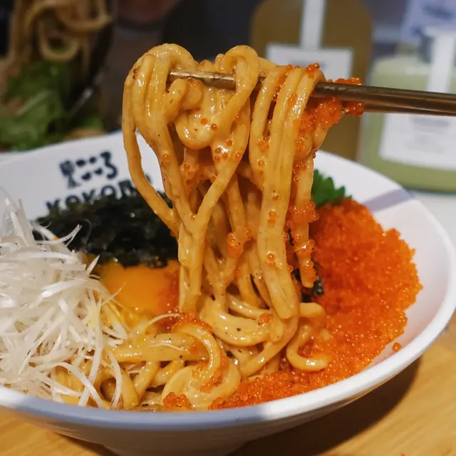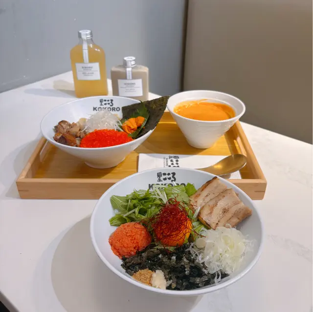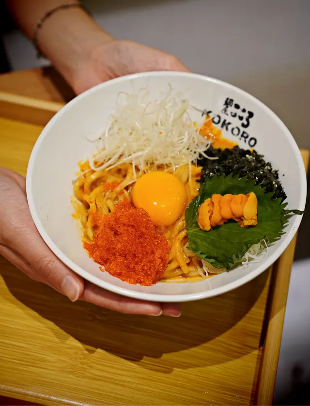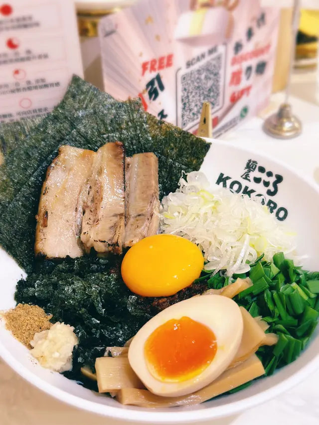 走進麵屋こころ,先被一股暖意與香氣包住🤗 蒸氣騰起、湯鍋咕嚕作響,醬香裡透著一點海的氣息😋 這次鎖定兩款人氣麵點與店內 nomimono 系列飲品,想看看它如何在濃厚與清爽之間拿捏分寸🤭 海膽沾麵一上桌就先聲奪人🤩 採用 100% 新鮮空運海膽,整碗沾汁幾乎是海膽本體的延伸,色澤金橙,質地綿密得近乎奶凍,入口是厚實的甘甜與海潮感,creamy 到有點危險🥰 表面鋪了巨量飛魚籽,顆顆在齒間爆開,把鮮度和鹹香往上一推,讓濃稠不至於悶住☺️ 麵條偏粗,筋性足,掛醬力強,第一口像被海風迎面拍來🤩 建議分次輕沾、循序漸進,不然很容易一口太滿😆 這款每日限量,售完即止,想吃得早點到,否則只能望碗興嘆🤭 正宗全料東京撈麵則是另一種風景:生蛋黃、辣肉碎、溏心蛋、紫菜、蔥花、韭菜、竹筍、紫菜碎、生蒜、魚粉與小麥麵,料多卻不散👍 關鍵在「拌」——把蛋黃戳破,連同辣肉碎的油香、魚粉的乾物旨味、一點生蒜的直球辛辣,牢牢裹住每一根麵😋 蔥花與韭菜帶出清脆的草本氣,竹筍脆口,溏心蛋在半熟與鹹香之間補了一記溫柔🤩 整體走重口厚實路線,尾段冒出紫菜的甘香收束✅ nomimono 系列裡,抹茶拿鐵與抹茶玄米茶各司其職😎 抹茶拿鐵奶香圓潤,甜度節制,抹茶的微苦在收尾浮出,和撈麵的油脂彼此緩和😋 抹茶玄米茶則清爽俐落,炒米香像新鮮爆開的米香,乾淨地把味蕾「歸零」,特別適合接在海膽沾麵後面,讓下一口又回到新鮮的起點😘 …查看更多
